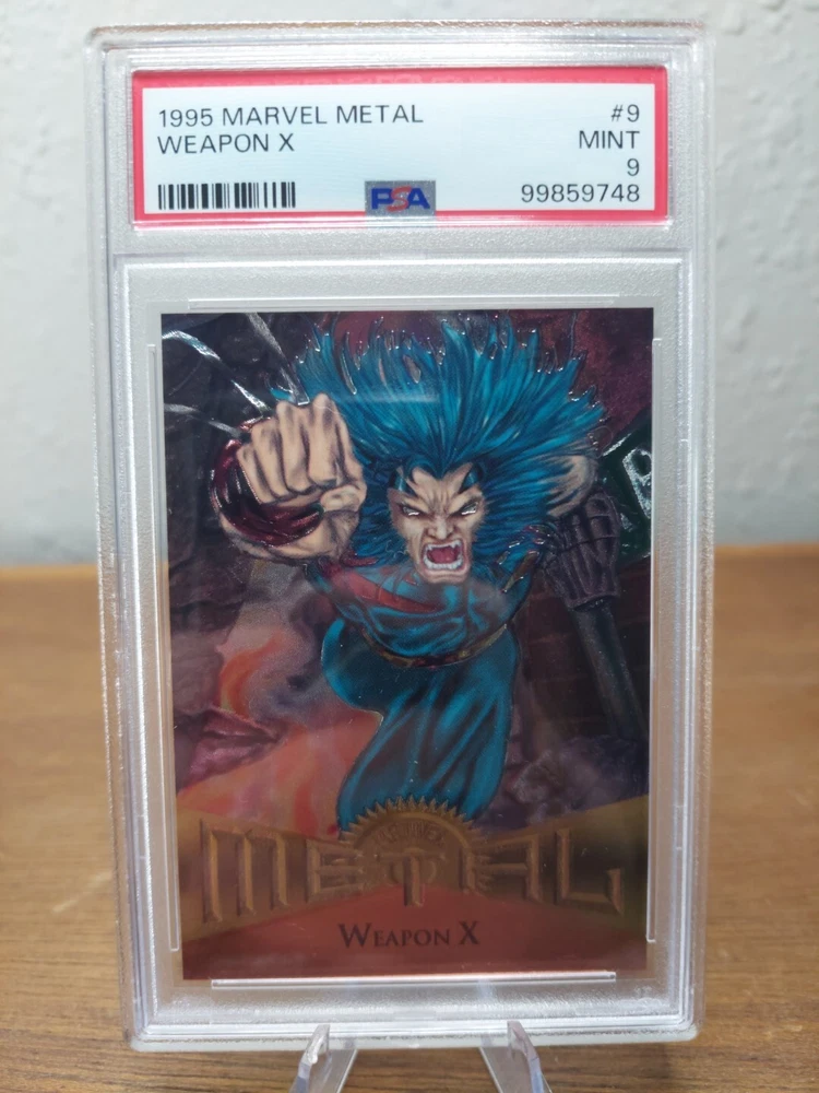 Up for sale is a 1995 Marvel Metal #9 non-sport trading card featuring Weapon X. This card is a part of the base set and has an embossed feature. It is a rare find with a low population report and has been graded PSA 9 Mint. The card was manufactured by Fleer in the United States and has not been autographed. The featured artists are Ken Lashley and Tom McFarland. The card belongs to the Marvel (MCU) franchise and is perfect for collectors of action, adventure, and comics genre cards.