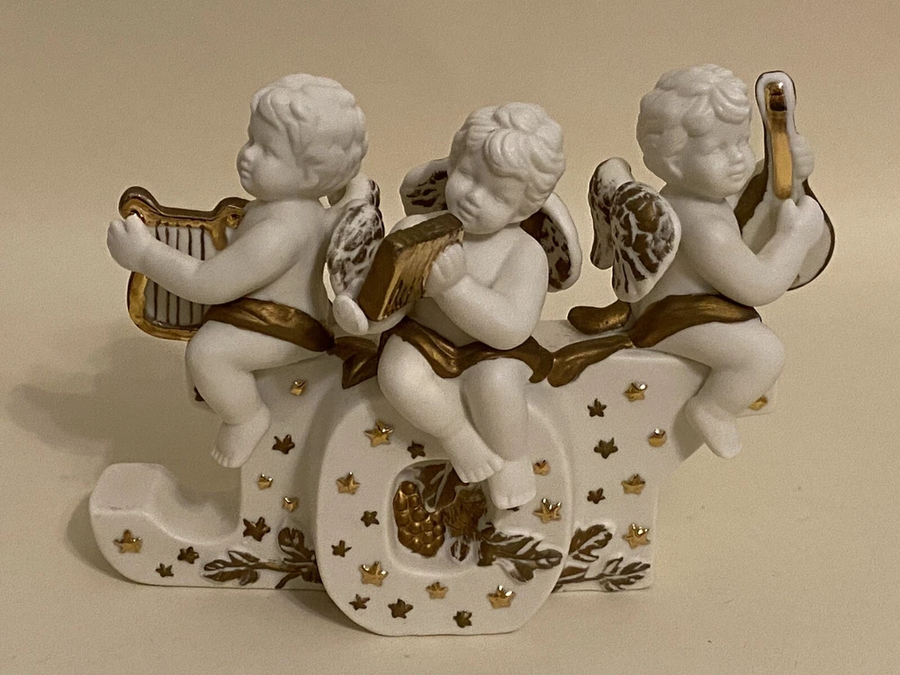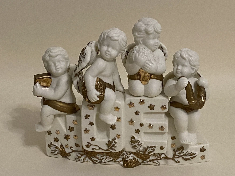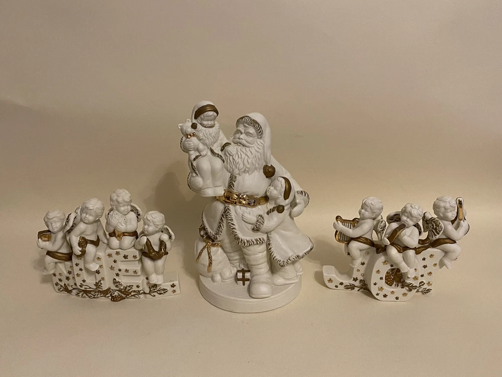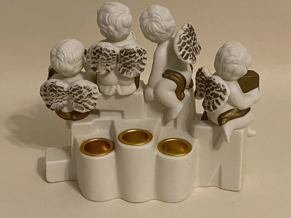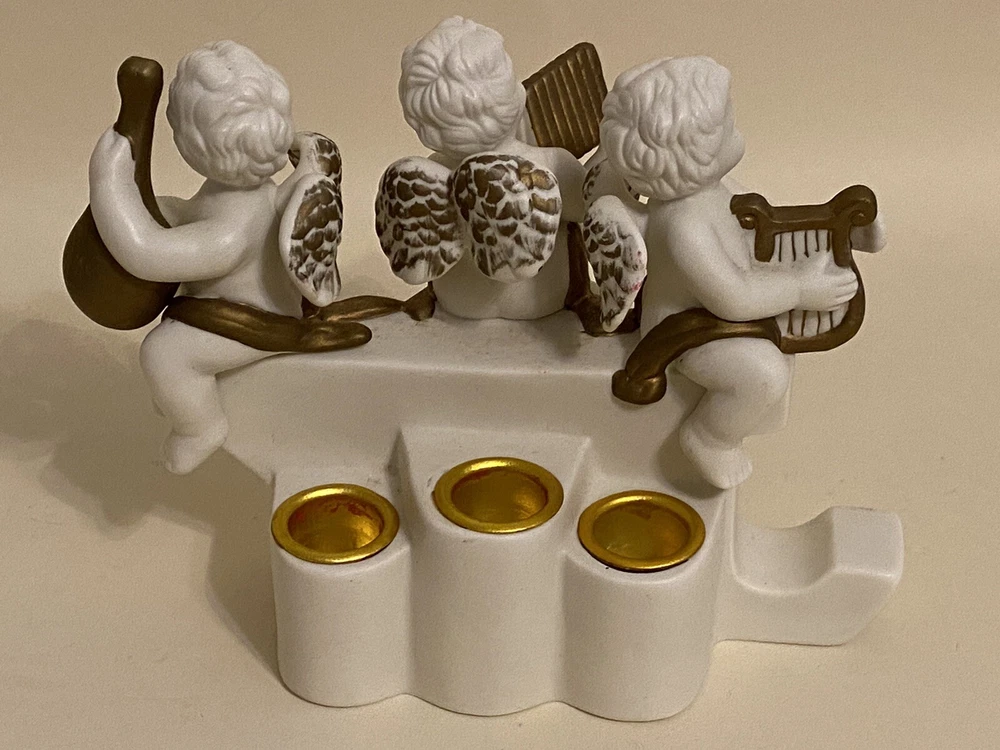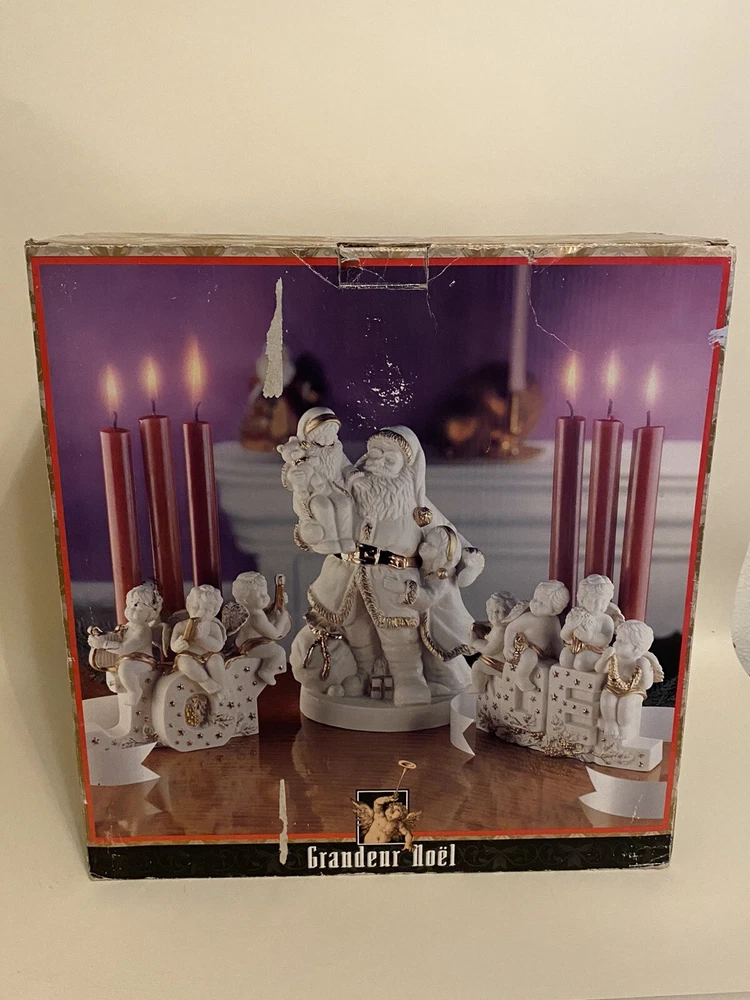 1996 Grandeur Noel 3 Pc. Porcelain Candleholder Set Santa Cherubs Joy Noel EUC. Box has some wear, pieces are in excellent condition! See photos