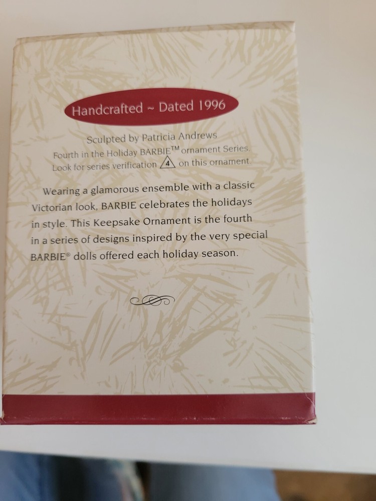 This Hallmark Collector's Series 1996 Holiday Barbie Keepsake Ornament is a must-have for Barbie collectors and holiday enthusiasts alike. The ornament features an irregularly shaped barbie doll with an all-over multicolor pattern, dressed in a festive holiday outfit. The doll comes with attached items and is made of mixed materials, making it a unique addition to any collection. The ornament is part of the Ornaments collection and is a vintage piece from 1996. It was manufactured in China and is perfect for Christmas decorating. The Barbie doll is small in size and is sure to catch the eye of anyone who sees it. Add this one-of-a-kind piece to your collection today!