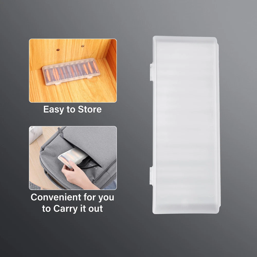 Bullet Points: Battery Security: Extend battery life while keeping your AA batteries secure in our protective case. Prevent short circuits and discharges for optimum battery management Spacious Convenience: No more worrying about cramped storage with our AA Battery Case's high-storage capacity. Accommodates up to 10 AA batteries, making it ideal for travel or home use Long-Lasting Material: Built with perfect materials, our AA battery carrying case ensures long-term durability and sturdiness, ensuring your batteries stay safe and secure for extended periods of use Space-saving Solution: Our AA Battery Case's compact design allows for easy placement in wardrobes, drawers, and more, saving valuable storage space. Keep your batteries organized and quickly accessible with this user-friendly storage solution Broad Use: Safely store and transport your AA batteries with our convenient case. Perfect for camping, home, journey, and school use, it ensures a dependable battery for all your devices Keep your AA batteries organized and protected with our sturdy and strong storage case. Our compact design can hold up to 10 AA batteries, making it perfect for any journey. Don't settle for disorganized batteries. Specification: Product name: AA Battery Case Type: Empty box Product material: PP material Product weight: 24.5g Product size: about 14.5x5x1.7cm/5.71x1.97x0.67 inches Product List: 1 * AA Battery Case Notes: Due to different lighting and screen settings, the product color may be slightly different from the picture. Due to the difference in manual measurement, please allow a 1-3cm difference in size.