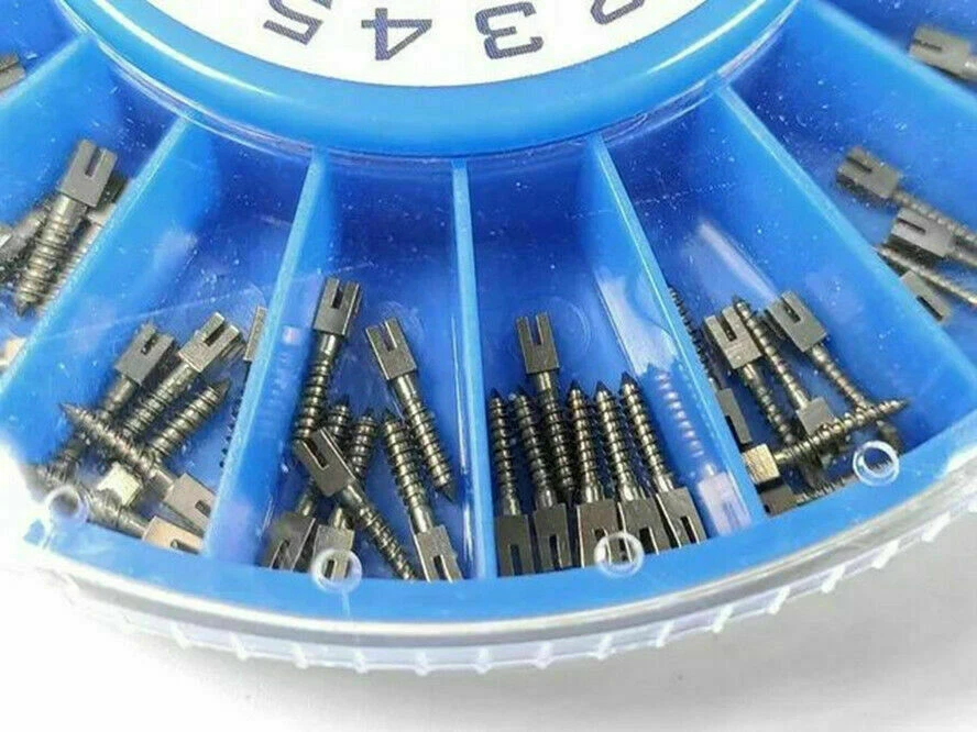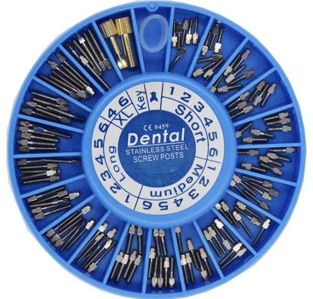 Dental Root Canal Pins Conical Screw Post Packing list: Total 1Set,120Pcs/Set Material: Titanium Set Content: Short: 36Pcs Medium: 36Pcs Long: 36Pcs XL: 12Pcs Key:2Pcs Used For Post-Core-Crown Restoration