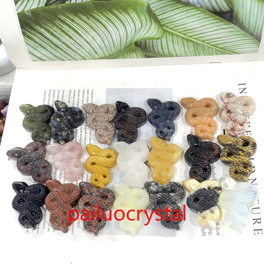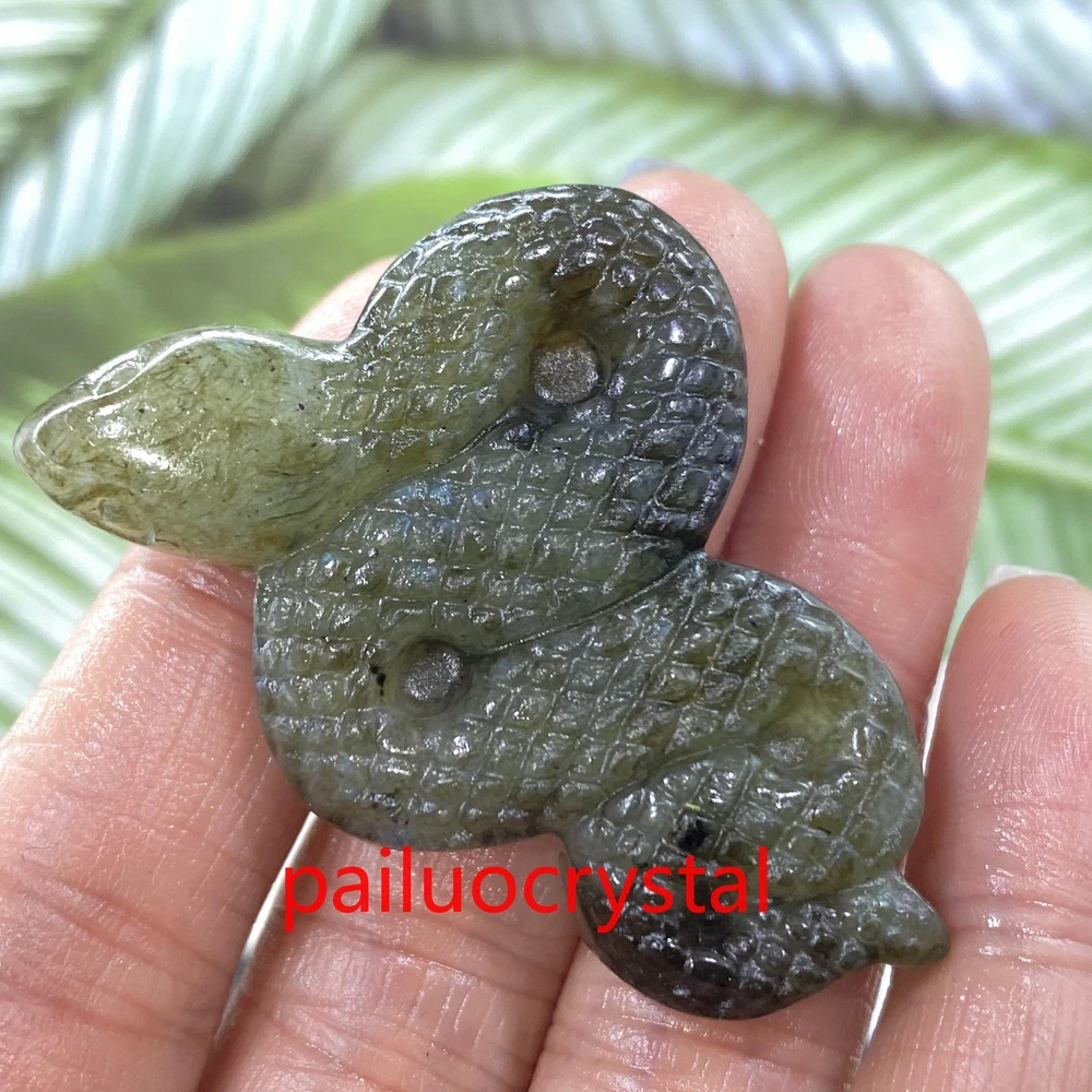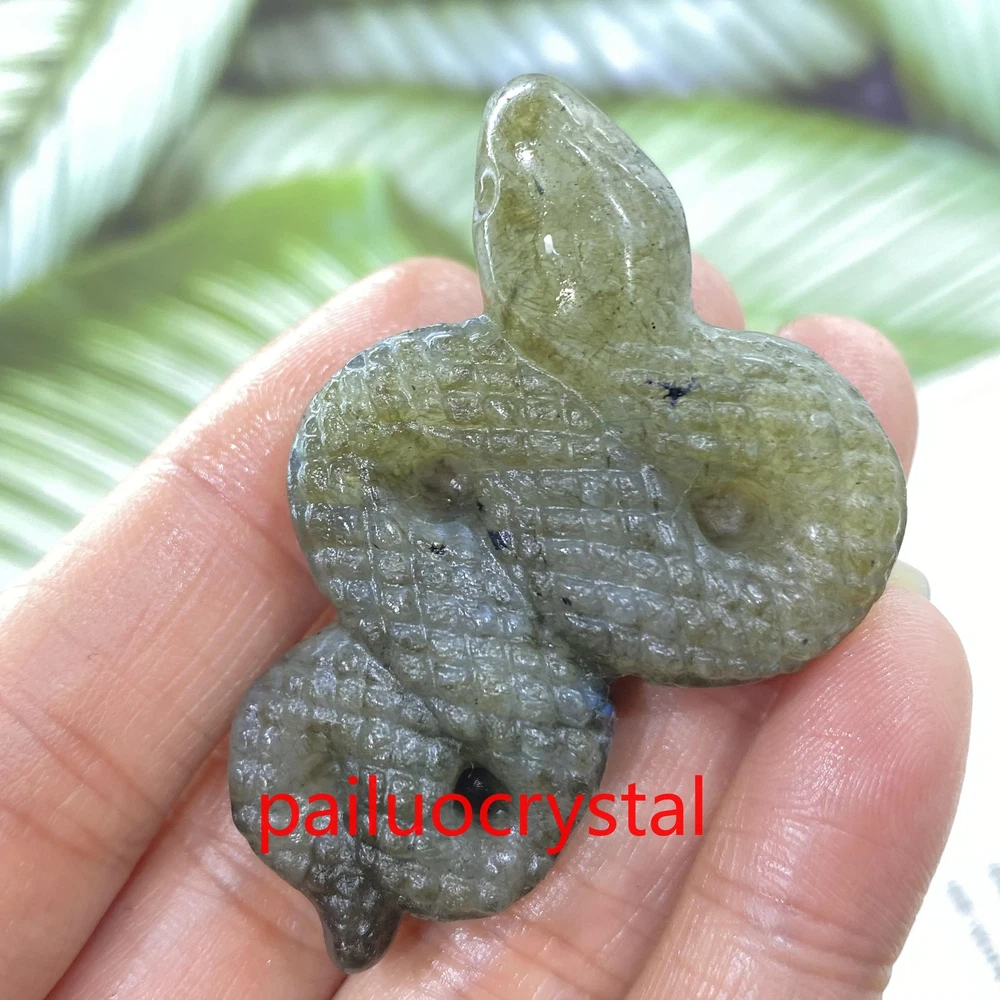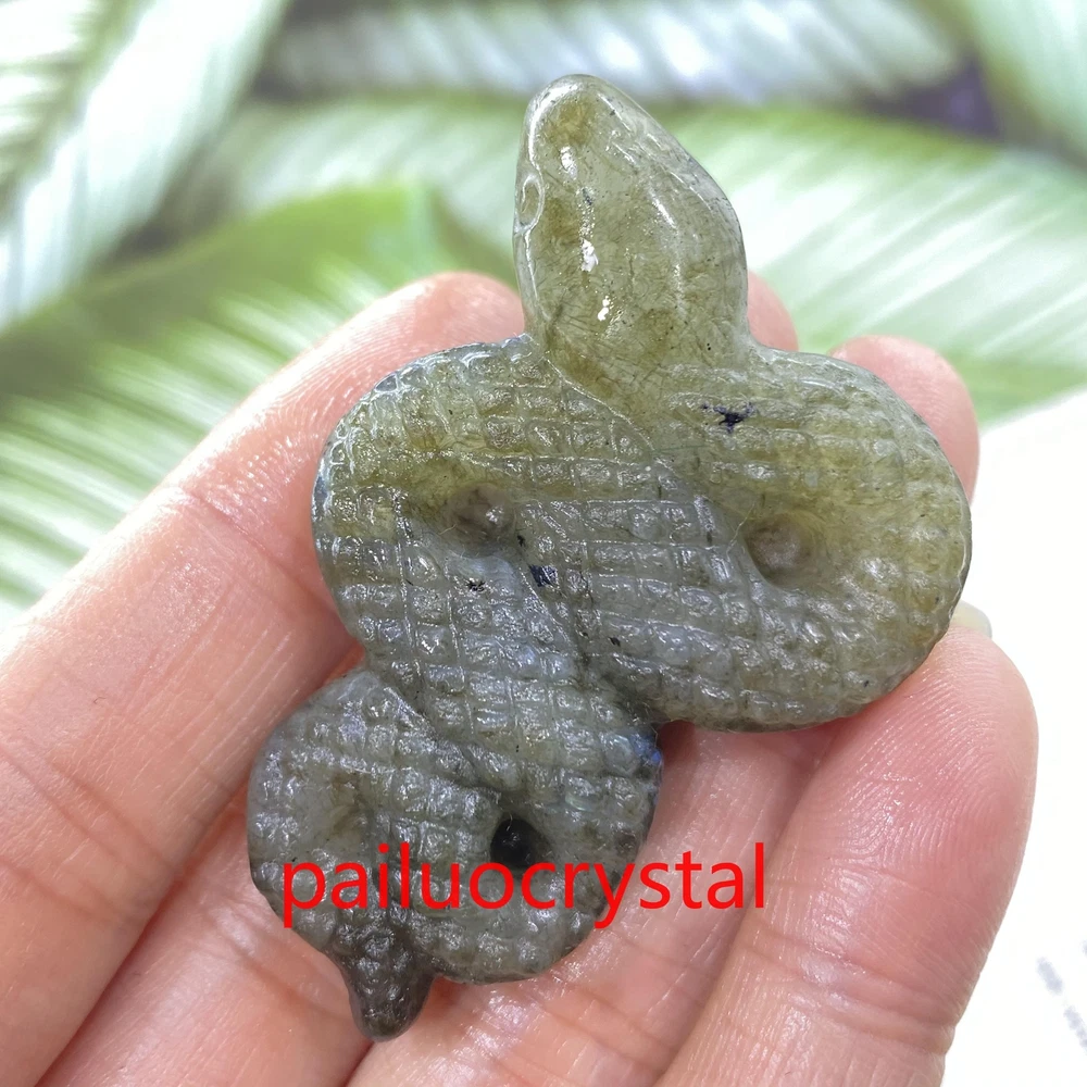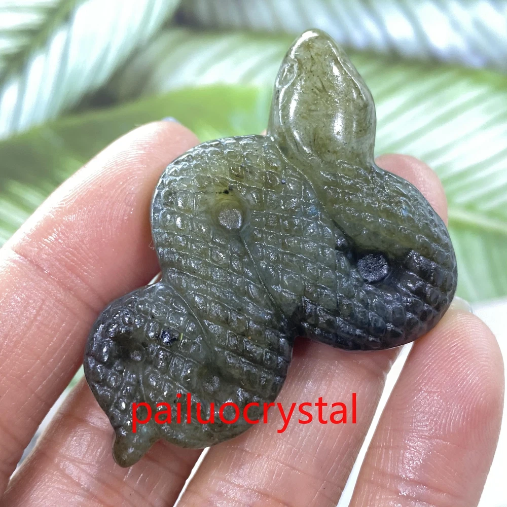 1pc Natural Labradorite Snake Skull Quartz Crystal Skull Carved Figurines Gem 2"