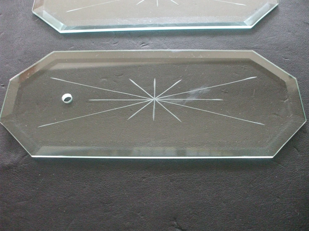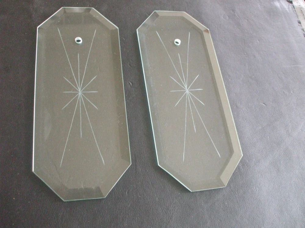 2 BEVELED CLEAR GLASS CHANDELIER REPLACEMENT GLASS PANELS. THESE ARE 8-5/8'' X 3-1/2'' X 3/16'' NICE CONDITION. PLEASE CHECK PICTURES FOR CONDITION. 0967