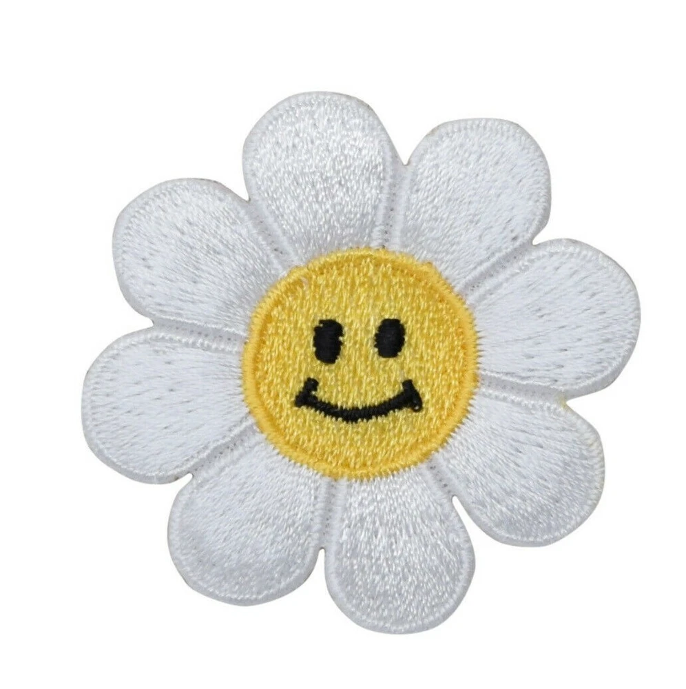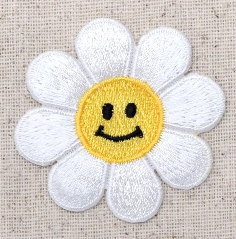 Smiling Daisy Iron on Applique High quality, detailed embroidery applique. Can be sewn or ironed on. Great for hats, bags, clothing, and more! Size is approx. 2" or 5.08cm