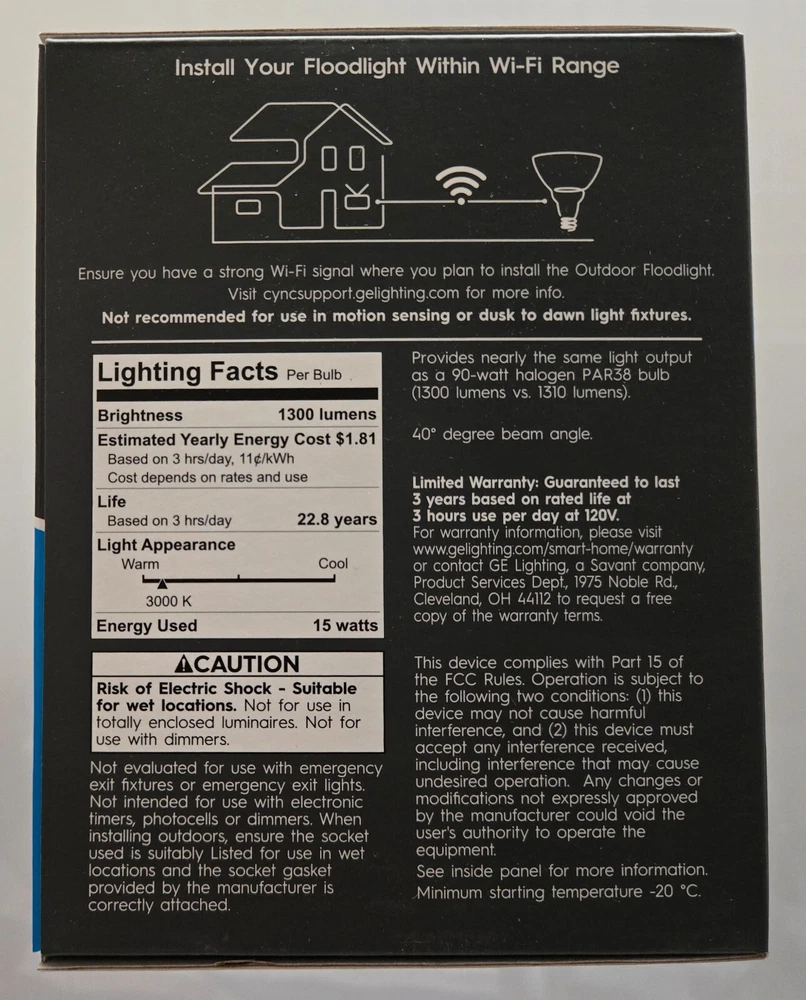 Brand New Item ( Not Refurbished ) Sale is Final Shipping to the lower 48 States only PayPal Confirmed Address Only No APO and P.O. Box please The GE Cync Smart Bulbs generate millions of colors. Decorate for each holiday, create the perfect party vibe, and support your team on game day. The tunable white spectrum lets you get the perfect hue. You can schedule your lights, so you'll never come home to a dark house. The lights also help keep your house secure. With voice control and the ability to control your lights away from home, these smart bulbs make the perfect addition to your home. Simple set up with the Cync App Voice control with Amazon Alexa and Google Assistant Out of home control without a hub Choose from millions of colors and white tones Range of white tones to highlight your home Create custom schedules to turn your lights on/off automatically Set scenes for every occasion Outdoor ready E26 Medium Base Dimmable Lasts 22 years based on 3 hours use per day 1300 Lumens Brightness 15W Energy Use (Replaces 90W Equivalent)