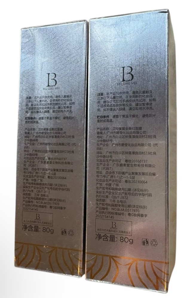 2 Golden Peel-Off Face Masks 98.4% Beilingmei 2.82 oz Each Exp 3/27