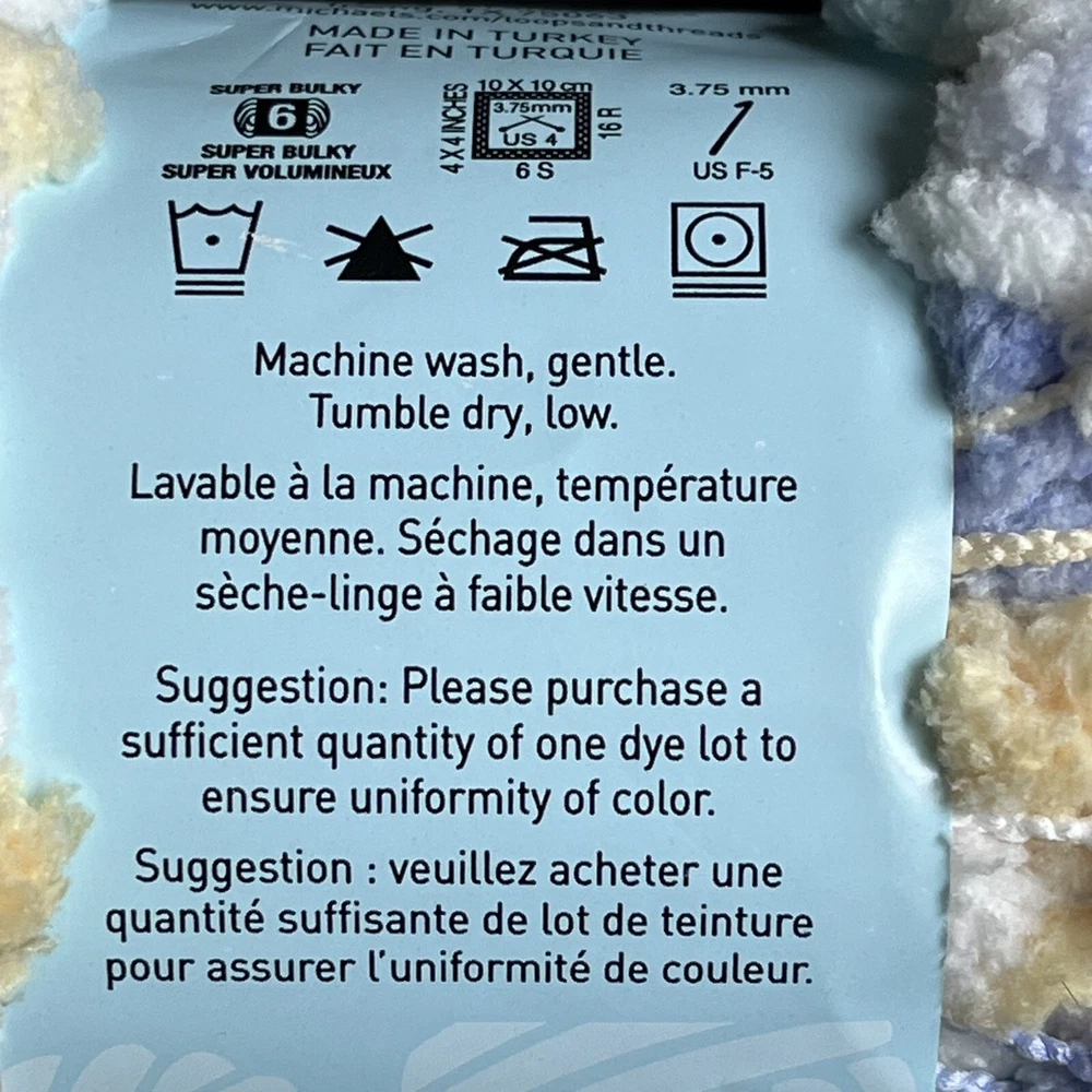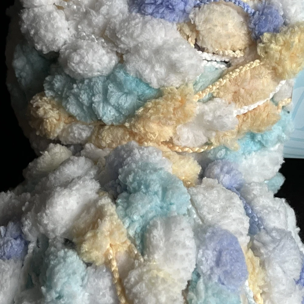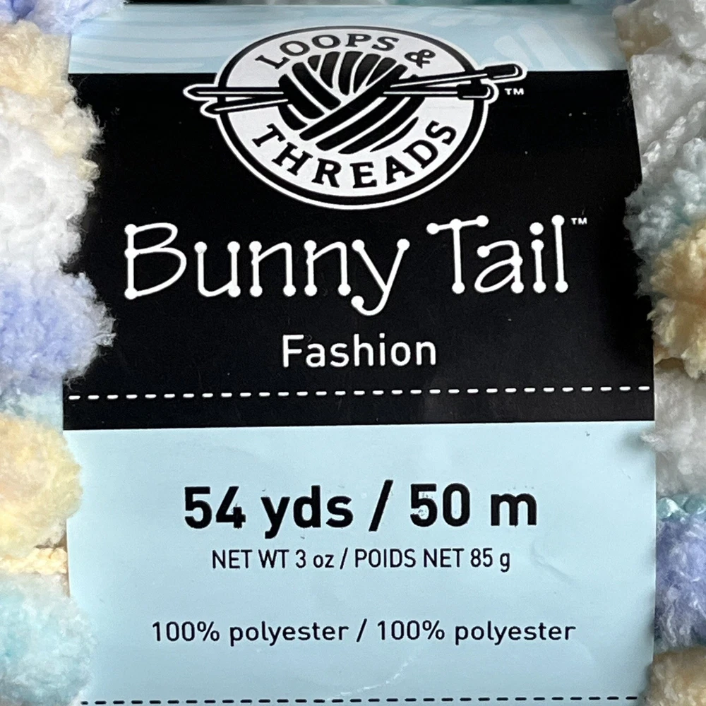 (2) Loops & Threads BUNNY TAIL FASHION Pom-Pom Yarn FROST #5 Blue Yellow Purple