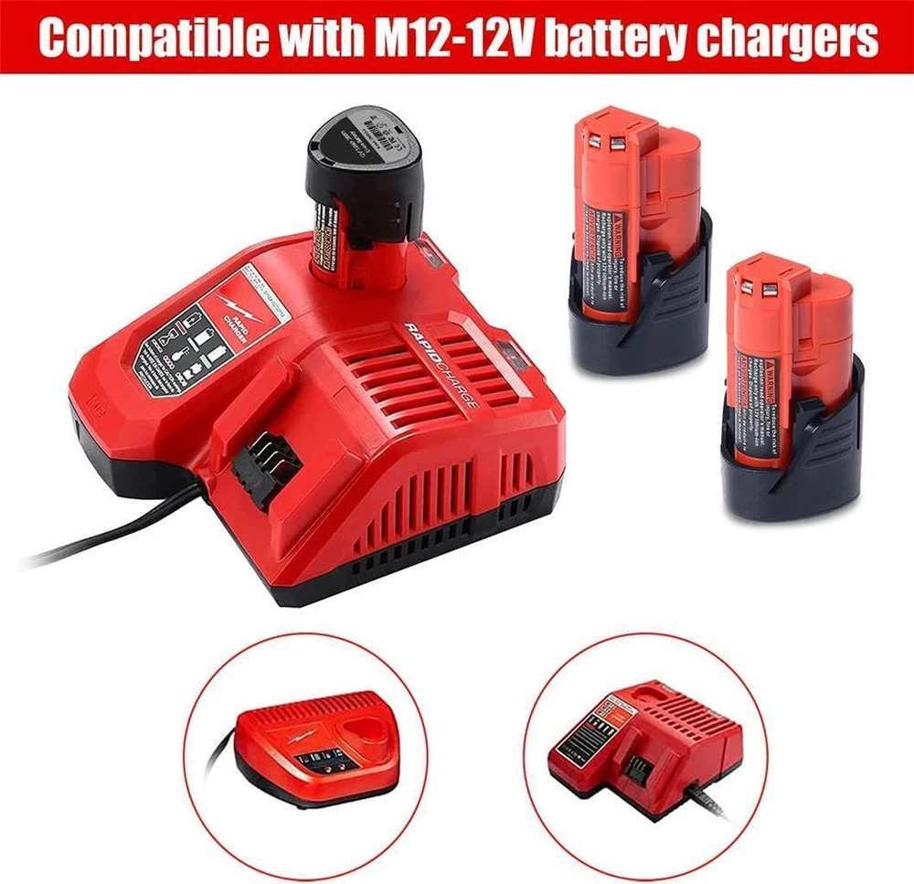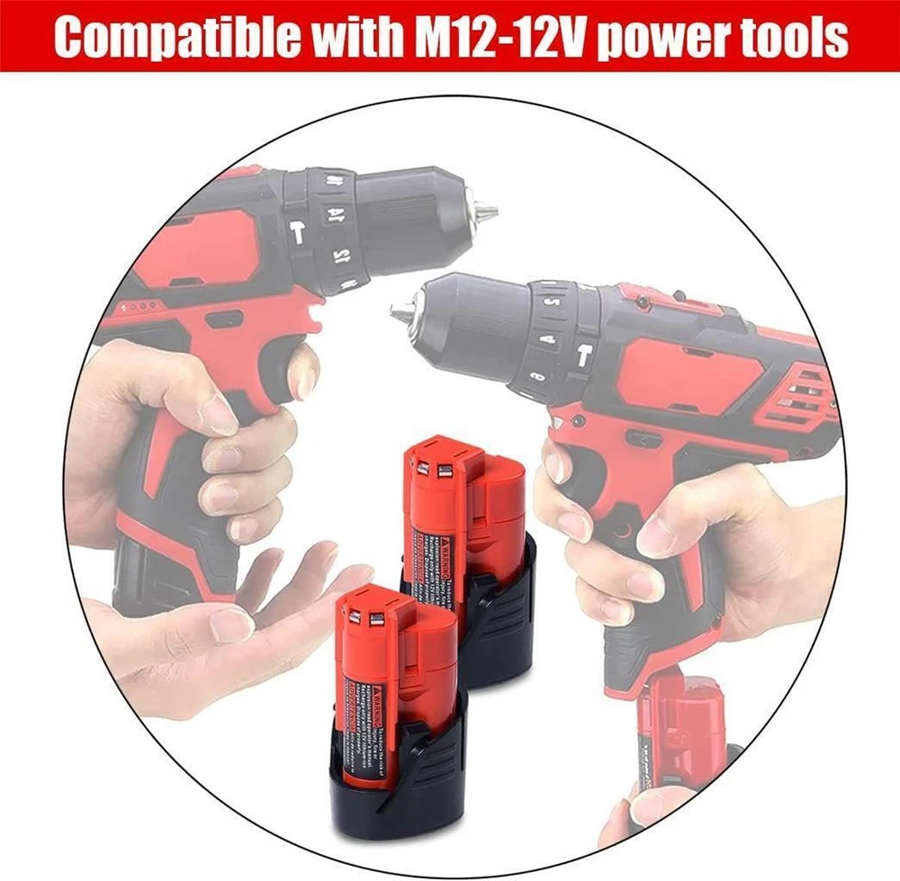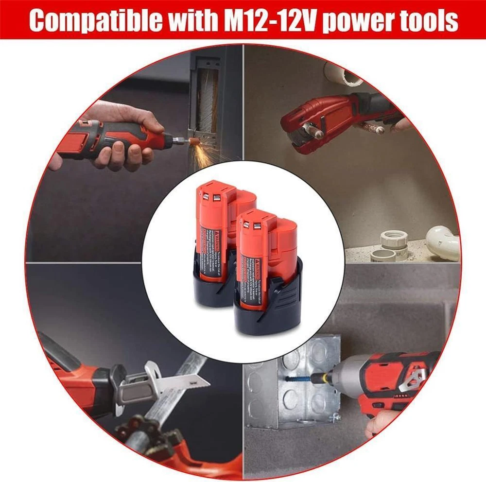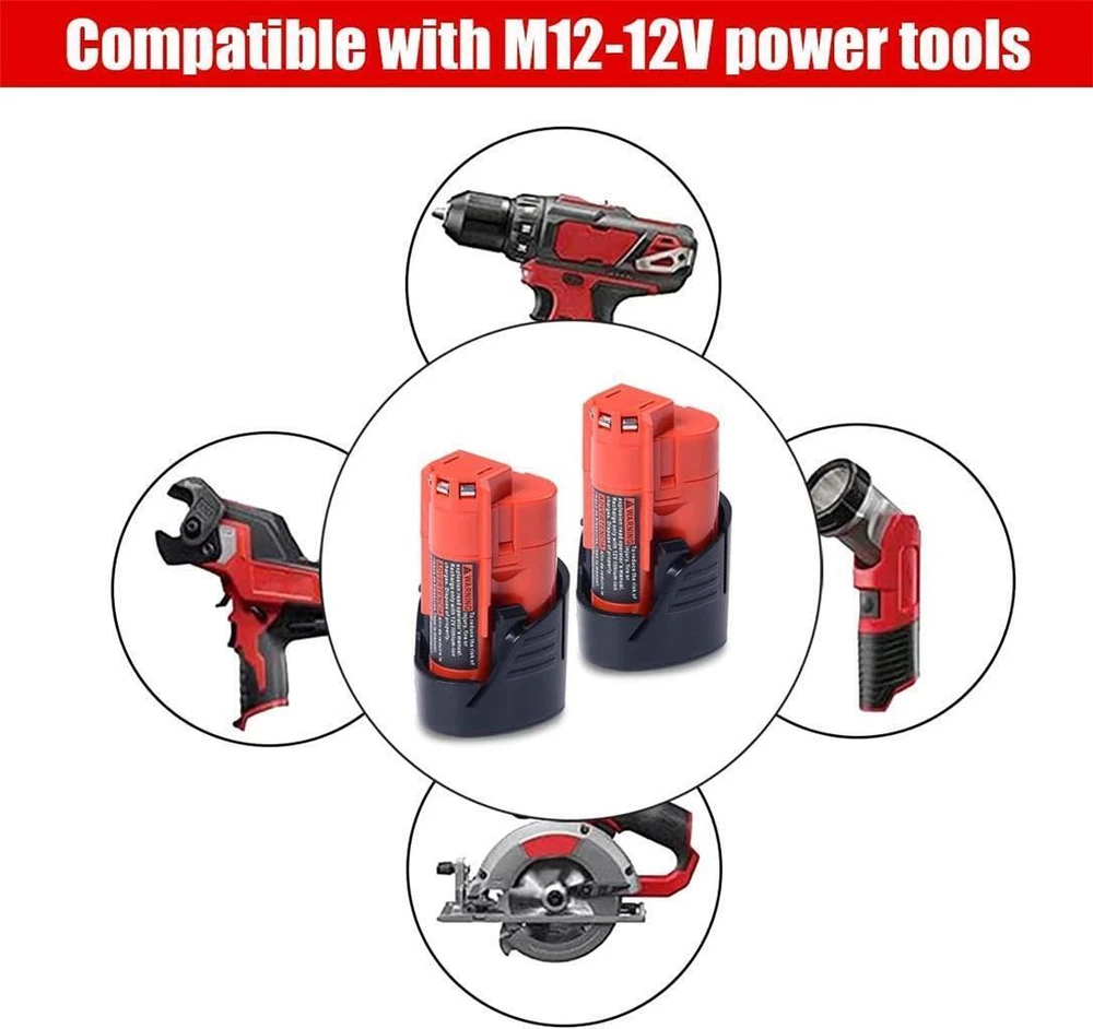 Description The Amazing 2 PACK 12V 3.0Ah(36Wh) Compact Battery compatible with Milwaukee 12V Lithium Cordless Power Tools & Battery Chargers. Compatible with Milwaukee M12 12V Lithium batteries: 12V 2.5Ah 30Wh CP2.5 48-11-2425, 2.0Ah 24Wh CP2.0 48-11-2420, 3.0Ah 36Wh CP3.0 48-11-2430, 1.5Ah 18Wh CP1.5 48-11-2401, 48-11-2402, 48-11-2411, 48-11-2412 compact battery packs and more. Compatible with Milwaukee 12V Lithium Cordless Power Tools: 2522-20, 2598-22, 2407-20, 2447-20, 2460-20, 2462-20, 2494-22, MLW2504-20, 2522-20, 2498-25, 49-24-0146, MLW2553-20, 2445-20, 2499-25p, 2471-20, 2475-20, 2457-21, 2207-20, 2520-21, 2458-20, 2590-20, 2520-20, 2125-21, 2416-20, 2462-20, 2467-20, 0850-22, 2314-20, 2401-20, 2401-22, 2410, 2410-20, 2410-22, 2411-20, 2411-22, 2415-20, 2415-21, 2420-20, 2290-20, 2429-20, 2429-21XC, 2432-20, 2432-22, 2446-20, 2446-21XC, 2450-20, 2450-22, 2451, 2451-20, 2290-21 and more. Heated Jacket Kit: TV205494, 302B-212X, 255B-21XL, 255B-212X, 2394-L, 233B-21M, 232B-21L, 232B-20S and more. Compatible with Milwaukee M12 12V lithium Battery Chargers: 48-59-2401 48-59-1204 48-59-1812 48-59-1808 48-59-1810 and more.