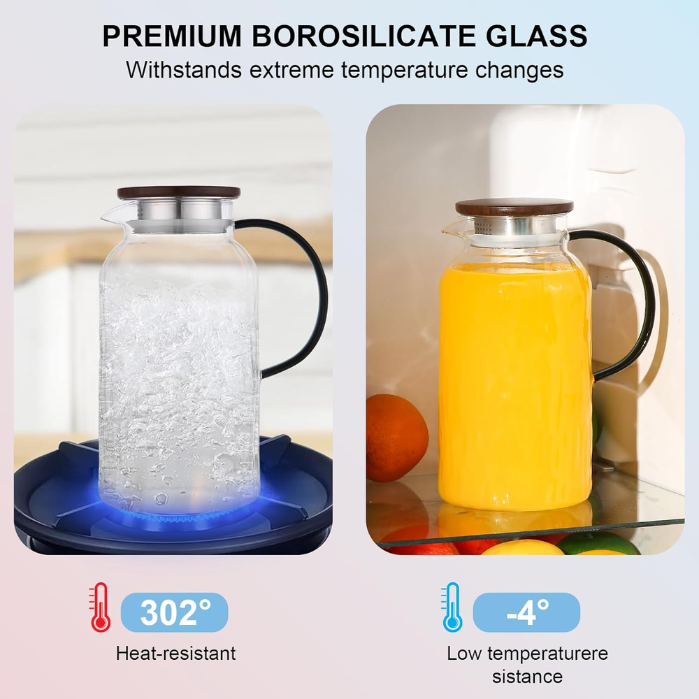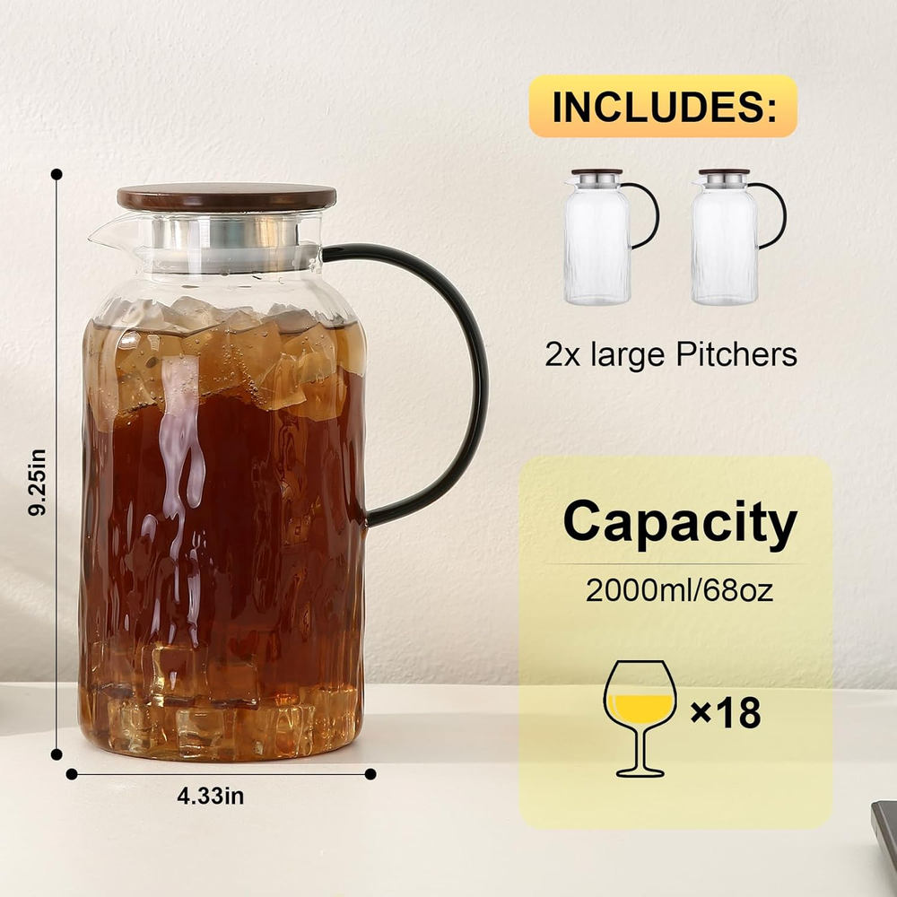 $ 4.76Glass Pitcher, 2.2 Liter Water Pitcher With Lid,Iced Tea Pitcher for Fridge