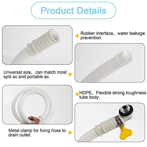 Return Policy Fast Delivery Trusted seller 2 Pack 5 FT Air Conditioner Drain Hose Kit, Plastic Tube for AC Condensate, Flexible&Durable Drain Hose for Mini Split AC&Portable AC Washer Dishwasher Faucet Product Description Premium Material: Made of high performance polyethylene, this drain hose has excellent corrosion resistance, easy to bend, light weight, weather resistant. This air conditioning drainage pipe has undergone pressure, anti-corrosion, adiabatic, and blowing tests, and has been repeatedly tested for drainage effectiveness. Value Package: 2 × ac drain hose, 2 × ac drain hose connector, 2 × hose clamp. Best cost-effective ac drain hose kit. Applicability: 2 Pack 5 FT. Our ac drain hose fits most mini-split air conditioners and other portable air conditioners. More Functions: In addition to being used as an air conditioning drain, it can also be used as a water hose and temporary fuel hose. Of course it can be applied to washing machines and dishwashers. Satisfactory After-sales Service: We are very confident that you will love our air conditioner accessories. If you are not satisfied with the product, please let us know and we will give you a satisfactory result. Shipping Returns Payment Shipping Shipping is FREE to all addresses other than APO/PO boxes in the lower 48 states. All our stock ships from US-based warehouses. Shipped via USPS or UPS (depending on location and package weight) Unless stated otherwise, all orders will ship within 24-72 hours of your payment being processed. Check our feedback to see the great reviews of FAST shipping we offer. Returns Seller does not accept returns Payment We currently accept payment via eBay managed payments only. Once payment is cleared, we will dispatch your shipment within 1-3 business days. Please refer to the "Shipping" tab for more information regarding shipping speed to your destination.