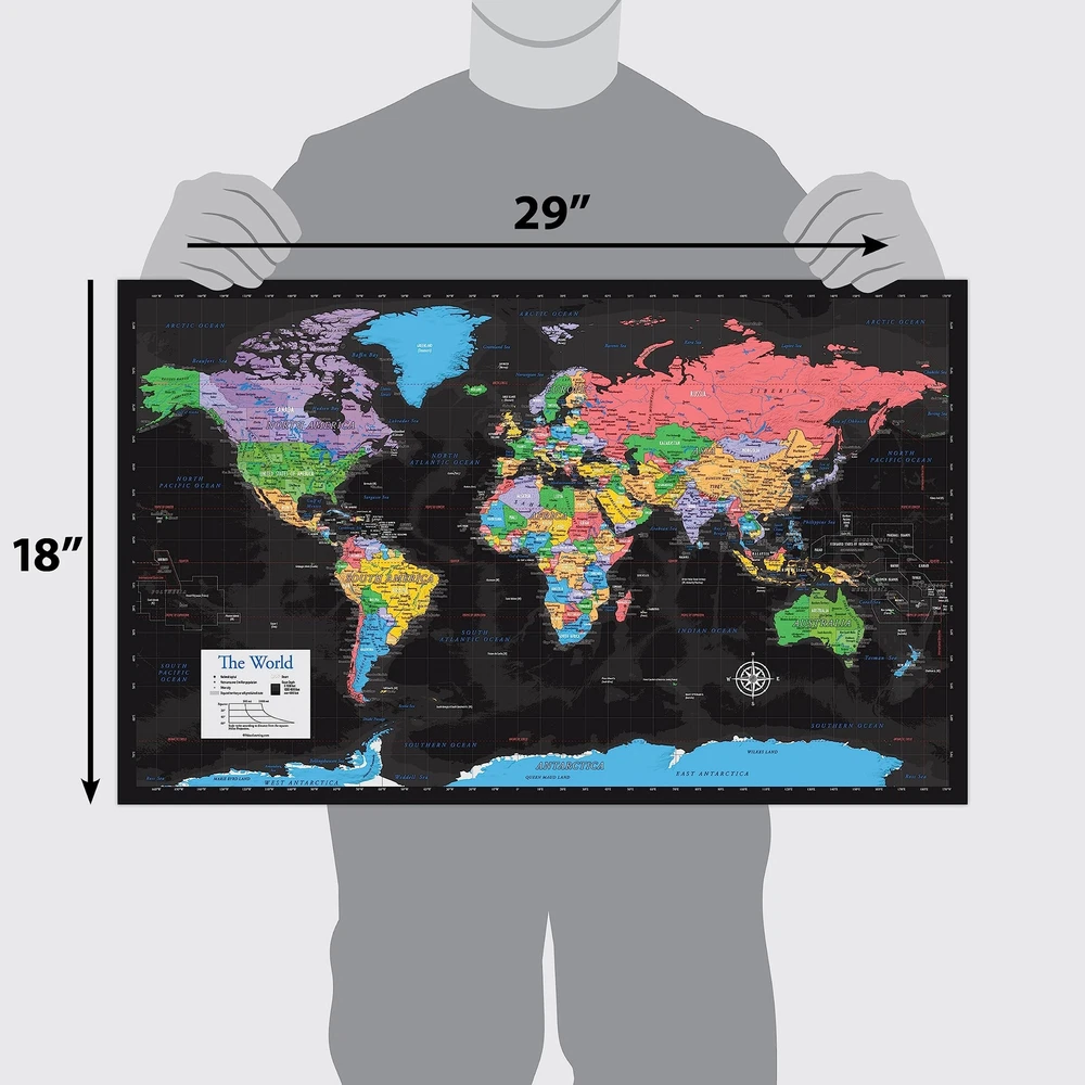 2 Pack - Laminated World Map & US Map Poster Set - Wall Chart Map of the World & United States - Made in the USA [Black] Set of 2 Posters Made in the USA Maps are 18” x 29” in size High-quality 3 MIL lamination for added durability Tear Resistant Miller Map Projection
