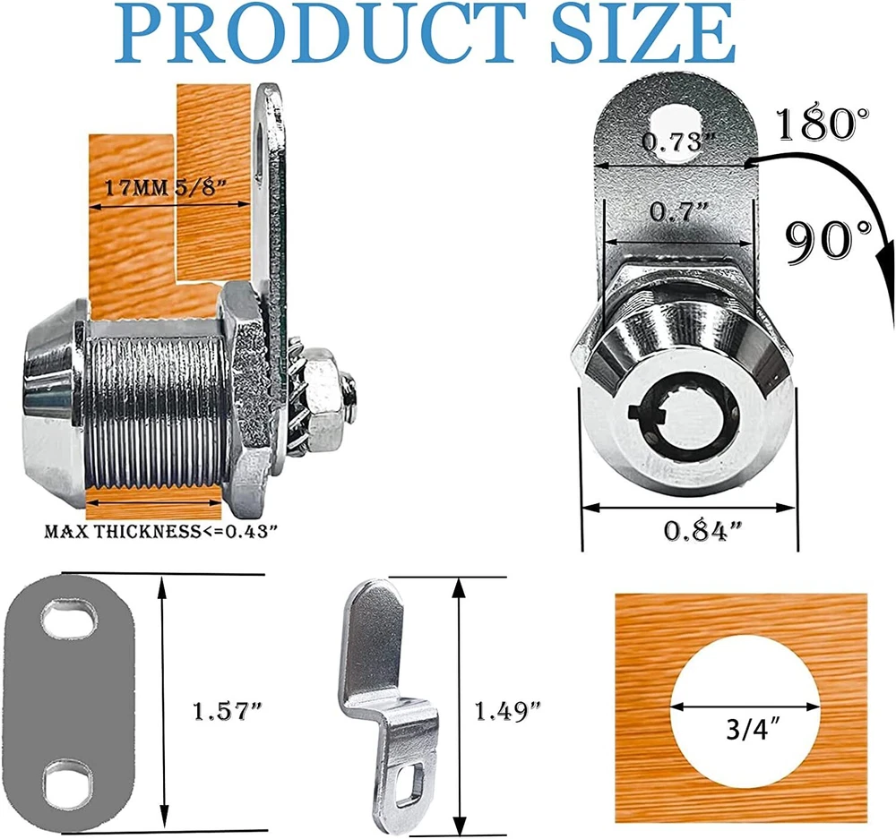 2 Pack Locks 5/8" Tubular Cam Lock for RV Camper Cabinet Toolbox REMOVABLE Keys 2 Pack Locks 5/8" Tubular Cam Lock for RV Camper Cabinet Toolbox Keys Description: 5/8 inch Tubular Cam Lock with 5/8" Each lock comes with 2 keys and Locks are keyed Alike . Tubular Cam Lock - 5/8" Cylinder Length The Tubular SEE PICTURES FOR MEASUREMENTS