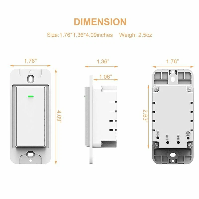 smart light switch protects your home, wall light switch, schedule timer, light will be turned on timely when not at home as desired .Help to make your home smarter,never again will you have to stumble on furniture upon returning home, as this smart light switch will turn the lights ON. It connects to your home WiFi through your smart phone or tablet (no hub required) to ensure a safer, brightly lit, welcoming environment. Specification: Shell Material: 94V0 fire retardant PC(Professional level) Rated Current: 15A Rated Voltage: AC110V~125V/50-60Hz Rated Power: 1 Gang (1800W) Wireless Standard: IEEE802.11b/g/n Working Frequency: 2.412~2.484MHz Static Power Loss: 0.5W Working Temp: -20C-75C Humidity: <95% Dimensions: 104x44x35.5MM Unit weight: 170g What's in the package Micmi Smart Light Switch Detail Instruction Manual Thumb Screws Panel Easy Setup with Amazon Alexa: Step 1: Download the maggie amigo App; Step 2: Power the Smart Wi-Fi switch, the button light will be flashing(Paring mode); If no flashing, pls hold the button for 10sec to reset. Step 3: Configure Smart Wi-Fi switch preferences on the App. Step 4: Set Your Echo Speaker by Alexa APP Step 5: Enable Our Skill in Alexa APP Note: Please keep in mind that the "maggie amigo" App should be set up first before setting up the Alexa device, please also refer to user manual for more detailed steps. Set up Google Home with an Android mobile device Open the Google Home app by tapping the app icon on your Android device. To allow Google Home app to discover and set up nearby devices, tap Allow. Tap SIGN IN , choose one Google account that you already logged in on your mobile device. If you only have one device that must be set up, tap CONTINUE. If Google Home app finds a list of devices, scroll to find the device card you want to set up.Tap SET UP. The mobile device is now establishing a connection with Google Home. If Google Home Cant establish connection, move closer to the Google Home device and tap TRY AGAIN. Select the Room (ex Living Room) where your Google Home is located. This helps you identify the device when you want to cast to it. Then tap CONTINUE. Choose the Wi-Fi network you want to connect to your Google Home. To automatically fetch the password for this network on this device, tap OK, then the password will populate in the password field. You can also manually enter your password. Then tap CONTINUE. In order for the Google assistant to answer your questions and to enjoy a personalized experience, you must sign into your Google account, then tap Google Home will now attempt to connect to the installed, then tap SET LOCATION.provided Wi-Fi network. When Google Home issuccessfully connected to your Wi-Fi network, tap CONTINUE. Wireless/Voice control devices Control devices connected to the smart plug wherever you have internet using the free App on your smartphone Scheduling Schedule the smart plug to automatically power Electronics on and off as needed, like setting lights to come on at dusk or turn off at Sunrise Easy Setup Connect to an existing Wi-Fi network with a simple push of the Wi-Fi Protected Setup (WPS) button on the Smart Plug and on the router. It's hassle-free and gets you connected in minutes.