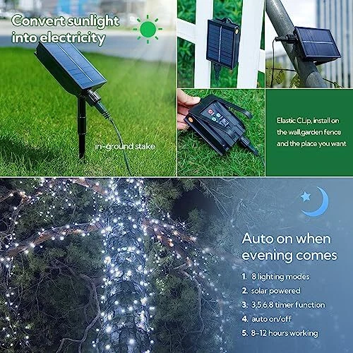 Menu 1. We require immediate payment. 2. We currently accept payment via eBay managed payments only. 3. Once payment is cleared, we will dispatch your shipment within 1-3 business days. Please refer to the "Shipping" tab for more information regarding shipping speed to your destination. 2 Pack Solar String Lights,Each 72ft 200 LED Solar White Christmas Lights Outdoor with Remote and Timer, 8 Modes Solar Tree Lights Waterproof Solar Fairy Lights for Garden,Yard,Patio,Party Product description ✨【Solar Powered Outdoor Lights】: Upgraded Solar Lights with remote- 2 Pack Each 72ft 200LED bright white String Lights.Advanced Solar Panel Build-in1200MAH Super Larger Capacity Battery for Longer Working Time and no extra utility electric cost.Twinkle 8 Lighting options for your various needs.Each String Length:22m/72ft,Lead wire Length:2m/6ft,Space between LEDs:10cm/4inch.Perfect addtion for create a warm,joyful and festive atmosp. ✨【Energy Efficient with Quick Charging】:Higher Conversion with Larger Size Solar Panel,Adopt new upgraded 1200mAh high capacity solar panel which can be charged under the direct sunshine for 6-8 hours,effectively converting light energy into electrical for storage that work for 10-12 hours to achieve high-efficiency release at night.Featured of 0 electricity bills throughout the year,energy saving and environmental protection.Without worries when t is no socket or power outage. ✨【Durable with Super Weatherability】:Waterproof Patio Lights,all the components are waterproof enabled to be used in a variety of environments from -10℃~45℃,Weather Resistent withstand various weather sunlight,wind,rain,snow,and humidity,which is the perfect choice for outdoor and indoor decoration.Durable overall wire for family safety usage.72ft long string is perfect for Hanging on tree or wver you like to light up your garden,patio,lawn,porch,gate,yard, Christmas Decoration,etc. ✨【Smart Remote Control with Timer】:The Solar Christmas Lights come with wireless remote control for more conveniently setting and Longer Singal range.3/5/8 different hours build in timer function can provide an automatic shutting off. In the meanwhile,3 Level dimmable brightness with 8 twinkle lighting satisfy for your various choose and scene display.Furthermore,memory function can save last setting mode when you turn it on next time. ✨【Ideal Outdoor Solar Fairy Lights with Worry Free Customer Service】:What you will get:2 x Solar String Lights,2 x Solar Panel,2 x Ground Stake,2*Remote Control,1 x User Manual.We support the durability of our products. If t is any problem with our product,please feel free to contact us.we are 24 hours and must try our best to deal with it,we will not let you bear any loss because of the product quality problem. PLEASE MESSAGE US IF YOU HAVE ANY OTHER QUESTIONS, AND MANY THANKS FOR READING ALL OF THIS. Copyright ©#. All Rights Reserved.
