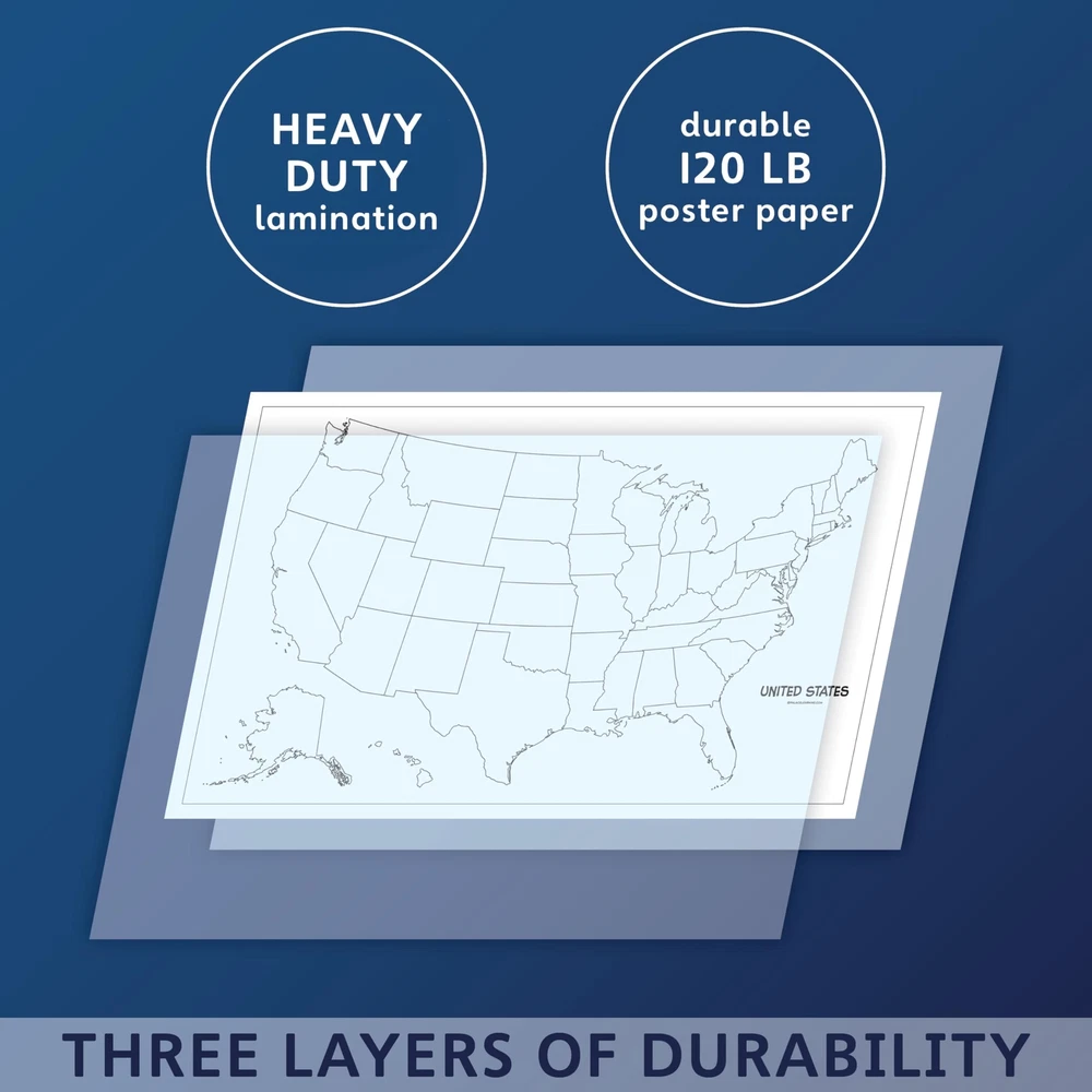 2 Pack - USA & World Map Blank Outline Posters (LAMINATED, 18" x 29") Set of 2 Posters Made in the USA Map posters are 18” x 29” in size High-quality 3 MIL lamination for added durability Tear Resistant For Use With Wet Erase Markers Only