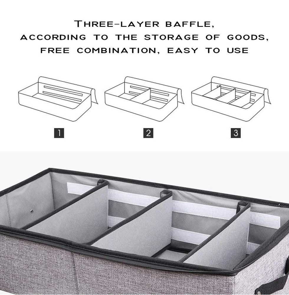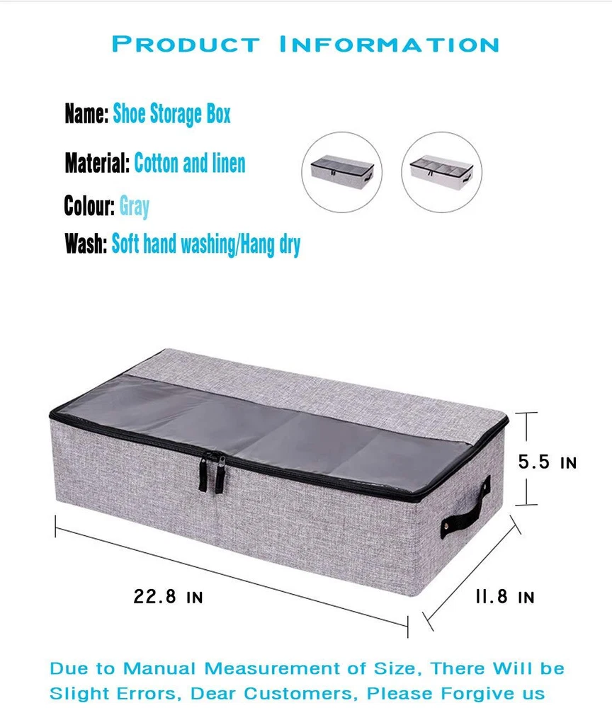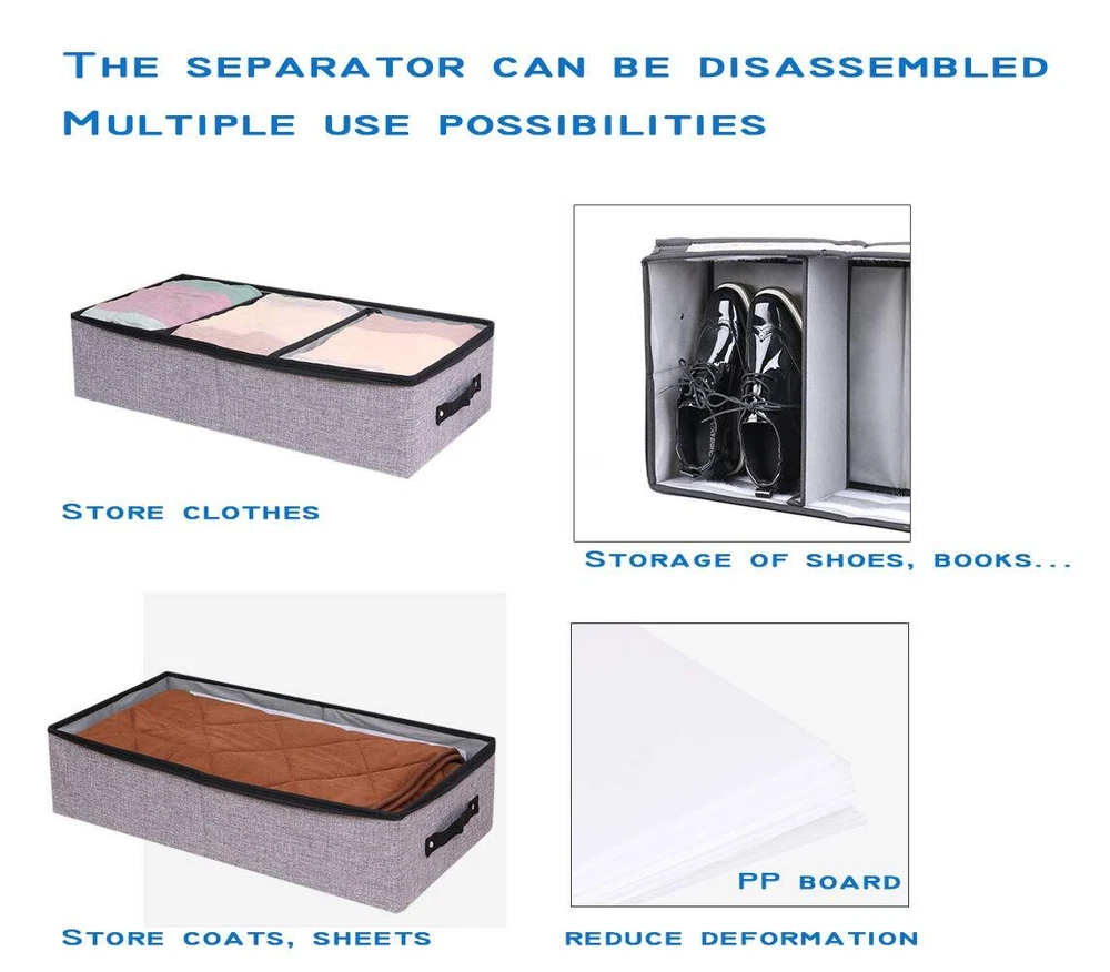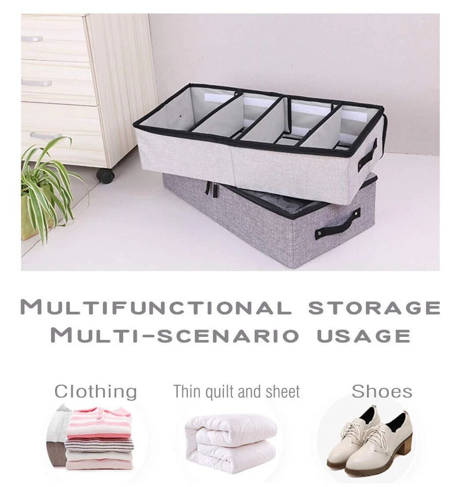AARAINBOW 2 Packs Foldable Under Bed Clothes Organizer with Lids, Underbed Storage Container with Adjustable Dividers, UnderBed Storage Bins with Handles and Clear Window (Gray+Light Gray) đă4 Large GridsăThe size of AARAINBOW Under bed shoe storage container is 22.3*12*5.7 inches. The shoe organizer under bed low profile equipped with 4 removel grids, Low profile under bed storage is perfect for storing your seasonal clothing, clothes, dress, boot, bedding, shoes, down jackets, scarf , toys, etc. đăSuperior MaterialăAARAINBOW Under bed shoe storage organizer is Made of high-quality linen and thick PP, which is odorless, durable, sturdy, breathable. Visible window allows you to quickly view the clothes and keep them tidy and neat. đ ăPractical DesignăThe underbed storage organizer for closet can be pull out effortlessly with the 2 reinforced handles. Underbed storage with dividers Equipped with 2 stainless steel zippers, 2-way zippers allow it to easily slide along the closure when in use. đ ăWidely UsedăThe foldable storage bins under bed are suitable for dormic, attic, basement, bedroom, etc. Small under bed storage easy to fold away and take up little space when not in use. đ ăTipsăPlease measure your space height and length firstly to make sure the box can fit there, we had offered the exact dimensions in description and picture. If you have any question about the fabric under bed zipper storage, please contact with us, We will offer you a satisfying solution, We are there for you, reply within 24 hours. SHIPPING - We offer FREE shipping on all orders! - We ship within 3 business days of payment, usually sooner - We use a selection of shipping services such as UPS, FedEx, USPS etc - We only ship to the lower 48 states, no APO/FPO addresses or PO Boxes allowed International buyers â please note: Import duties, taxes, and charges aren't included in the item price or postage cost. These charges are the buyer's responsibility. - Please check with your country's customs office to determine what these additional costs will be prior to bidding or buying. - We have confidence in our products, but if you are not fully satisfied please contact us within 30 days of purchase and you will get full refund. * Order Cancellation Policy ** You can return a product for up to 30 days from the date you purchased it. 1. The seller reserves the right to cancel the special case only due to eBay cancellation fee. 2. The decision of seller is the final. 3. The seller will respond to the cancellation request within 2 business days. Please wait for the result of cancellation. 4. In case the cancellation is not completed by some reasons, the buyer can follow the options below to get the refund. 4.1 The buyer can reject the item when it arrives. 4.2 The buyer can send the item back to the seller within 30 days If the buyer receives item (USA Shipment ONLY). The seller will provide the FREE return label to the buyer when the buyer opens " Return Item" case on eBay by using the reason as "Change my mind" ONLY. 5. When buyer has placed the order. The order will be processed and completed by automatic warehouse system within 5 minutes. In case that buyer sends the cancellation request after 5 minutes of placing the order, the request will be rejected. **Sending direct message to cancel the order is not allowed for every case.* Return Policy For the return case - If buyer would like to return the items for refund or replacement, please CONTACT SELLER to receive the free return label from seller. The refund or replacement will be processed with the tracking number of return label which is provided by seller only. The other ways of return which are not approved by seller will not be processed for the refund or replacement. CUSTOMER SERVICE - We try our best to make sure every customer is completely satisfied. - If there's a problem, feel free to message us! - We're happy to help.