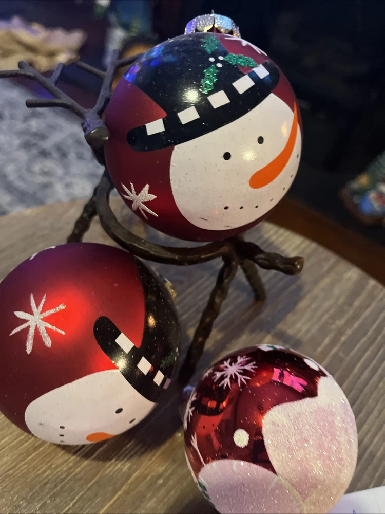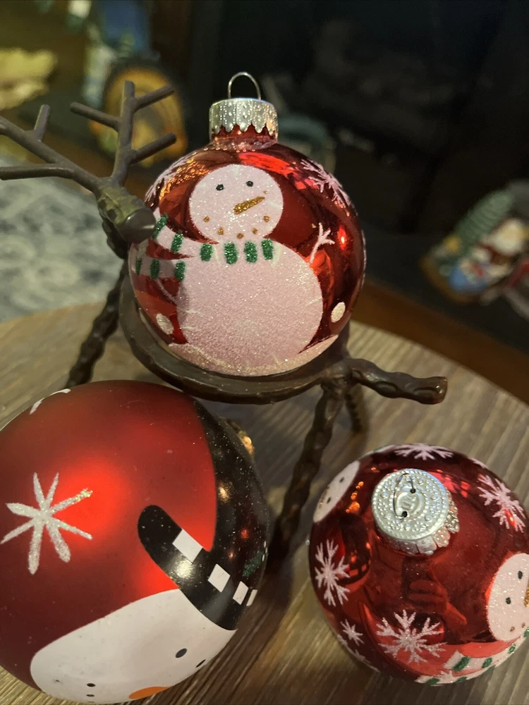 2 Ranch Snowman Snowflake Red Hand Painted PLUS 2 Glitter Snowman Snowflake VTG