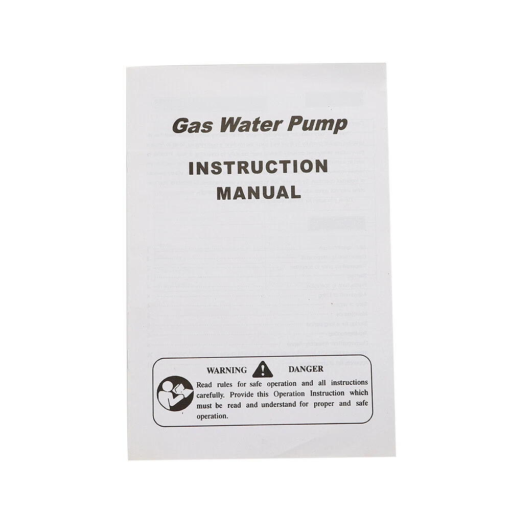 Description If You Are Looking for a High Flow Rate, High Efficiency, Portable and Durable High-quality Water Pump to Help Irrigate and Pump Water for Your Swimming Pool, Garden, Pond, Farmland, Then You Can't Go Wrong with Our Professional Water Pump. with a Solid Alloy Pump and Impeller, a Powerful 43cc, 1.7hp Engine, and a Maximum Flow Rate of 8-10m³ /h, This Pump Is a Great Assistant for Your Agricultural Irrigation and Pool Water Change. Specifications Engine Type: 43cc 1.7hp 2-Stroke Maximum Output: 1.25kw/6500 Rpm Fuel Ratio: 25:1 Fuel Capacity: 1.0l/0.26gal Water Pump Inlet: 1in (25mm) Water Pump Outlet: 1in (25mm) Maximum flow: 8,000l/Hour Maximum Delivery Lift: 30m/98.42ft Maximum Suction Lift: 8m/22.96ft Package Size: 38 X 30 X 35cm/14.96 X 11.81 X 13.77in Equ 2 Stroke Gasoline Water Pump Gas-Powered Semi-Trash Irrigation Transfer Pump Description Description Efficient and simple irrigation or drainage methods are one of the pursuits of many farmers, rescue teams, and fruit farmers. This portable water pump is a good choice! It combines high power with a lightweight body, making it easy for you to carry around and start working efficiently wherever you need it. It will be a good helper in the field and a good partner in emergency repair work. Key Features High Efficiency: It adopts a strong two-stroke engine, with larger and stronger cylinder strength. The 1400W, 40.2cc engine has a maximum speed of 6500r/min, achieving 282.5ft³ hourly flow rate and 98ft lift. With its help, your various irrigation and drainage tasks can be efficiently solved. Durable & Sturdy: The aluminum alloy pump body, iron frame, and ABS casing all have high hardness, high wear resistance, corrosion resistance, and rust resistance , achieving a longer service life. Large Fuel Tank & Low Fuel Consumption: The 0.22gal fuel tank allows you to work for a longer time at once, saving you time and effort. A high-quality carburetor ensures a 610g/Kw.h of fuel rate, reducing fuel consumption. User-friendly Design: The drawstring start, one-click shutdown, and gear controlled speed regulation design simplify various operations while ensuring safety, making it easier and more reassuring for you to use. Lightweight & Portable: It is lightweight(19.6 lbs) and portable(15.74*11*11.81in), combined with a convenient handle located in the middle, allowing you to easily lift it with one hand to the place you need and start working. Safety Guard: The check valve can effectively prevent backflow, providing higher safety for your use. Oil bubbles and visible fuel pipes make it easy to track the delivery of fuel and achieve a safe start-up. High Stability: The quadrilateral base and enlarged anti-slip pads provide greater stability and effective vibration reduction, ensuring better performance in harsh environments. Silencing Hood: The internal silencing hood effectively alleviates the noise generated during operation, maintaining noise within an acceptable range without affecting other activities. Protective Packaging: This product comes in a custo m air column bag th at resists common compression and falls to prevent product damage in transit as much as possible. Details Heat Dissipation Holes: Widely distributed and efficient heat dissipation holes can quickly dissipate the heat generated by the machine during operation, preventing damage caused by high temperatures and ensuring stable operation. Air & Water Filters: The filters can effectively isolate impurities in water and air, prevent blockage of water pipes and water pumps, and improve the working efficiency. Large Diameter Inlet/Outlet: The 1-inch large diameter inlet/outlet can be paired with most of the water pipes on the market, with high universality and more effective use. Drainage Port: It can easily discharge excess water and impurities from the pump, extending its service life. Application It can provide reliable drainage or irrigation solutions for homeowners, farmers, construction personnel, etc. It is mainly used for pumping irrigation of vegetable gardens and flower beds, garden lawns, outdoor pumping and drainage operations, irrigation and fertilization of crops and green seedlings, flood control and drainage, tunnel drainage, etc. Specifications Material: Aluminum Alloy, Iron, ABS Color: Black, Red, Grey Style: Modern Assembly Required: Yes Engine Type: Single Cylinder, Air-cooled, 2-stroke Number of Items: 1 Displacement: 40.2cc Max. Lift: 30m/98ft Max. Suction: 7m/23ft Max. Power: 1400W Max. Speed: 6500r/min Gasoline: No.90 and Above Flow Rate: 8m³/ 282.5ft³/ H Fuel Tank Capacity: 0.85L/0.22gal Inlet/Outlet Diameter: 2.5cm/1in Fuel Consumption Rate: 610g/1.34lbs/Kw.h Fuel Type: Mixed Oil (25 Gasoline : 1 2-stroke Engine Oil) Gross Weight: 9.79kg/21.6kbs Net Weight: 8.91kg/19.6lbs Product Size: 40*28*30cm/15.74*11*11.81in Package Size: 40*33*33cm/15.74*13*13in Package Included 1*Water Pump 1* Fuel Oil Mixing Bottle 1*Tool Kit 1* Filter 1*Funnel 1*Extra Air Filter 1*English Manual All Accessories for Assembly Notes Please carefully r ead the manual and strictly follow the precautions to have a better experience. Please use #90 or above gasolin e for this product and mix it with two-stroke engine oil in a ratio of 25:1. Please note that water must be added to this product before use. Before starting the machine, please check if the machine is complete and check the coupling to see if the internal drive is damaged. After using, please idle for 2-3 minutes and wait for the engine temperature to decrease before turning it off to improve its service life. Please drain the fuel tank when not in use for a long time. Please allow the slight color difference caused by the shooting light and 1-3cm error due to manual measurement, and make sure you do not mind before you order. Description Exclude water pipes, customers need to buy separately, Inlet pipe: Thick-walled pipe with an inner diameter of one inch (2.54cm), or steel wire. Outlet pipe: a hose with an 