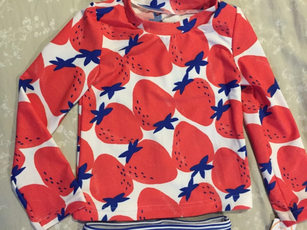 Just One You by Carter's 2pc long sleeve rashguard swim suit Red/blue "Strawberry" long sleeve rashguard w. blue striped swim bottoms UPF 50 + protection