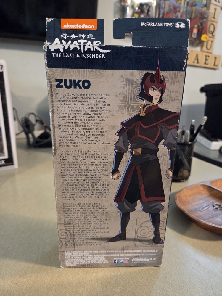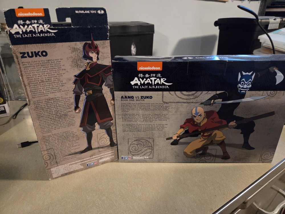This 2 for 1 deal features Aang vs Blue Spirit Zuko and ZUKO The Last Airbender ACTION FIGURE by McFarlane Toys. The figures are multicoloured, made of plastic, Gold Label Zuko stands at 7 inches tall, Aang vs Zuko stands at 5 inches tall. They are part of the Avatar franchise and TV show, perfect for fans of anime and manga. These original action figures were manufactured in China. Ideal for collectors or as a unique gift for any Avatar enthusiast. Never been opened but packaging does have damage.