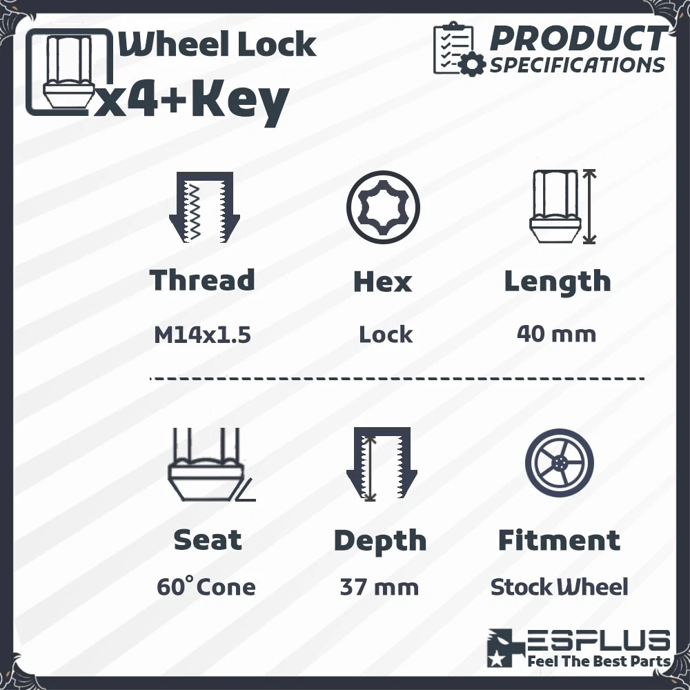 Store Home | Hot Products | Hot Deals | Suscribe for More | Customer Feedbacks | Contact us Categories Universal Lug Nuts OEM Lug Nuts Wheel Locks Conical Seat Lug Bolts Ball Seat Lug Bolts Hub Centric Spacers 4 Lug Wheel Adapters 5 Lug Wheel Adapters 6 Lug Wheel Adapters 8 Lug Wheel Adapters Studs Conversional Adapter 5 Lug HubCentric Adapter 6 Lug HubCentric Adapter Universal Wheel Spacers M14x1.5 OEM Wheel Lock Nut Set / Conical Seat 60 Degree / 30mm Flange / 1.58" Tall Specifications Quantity: Set of 16 Lut Nut+4 Wheel Lock + Key Thread Pitch: 14x1.5 Lug Nut Height: 1.58" (40 mm) Lug Nuts Flange: 1.19" (30mm) Seat : 60 Degree Conical Seat Material: 10.9 Grade SCM Heat Treated Steel Color and Finish: Black Drive: Lock Tool Requirement: 3/4"(19mm)/ 13/16" (21mm) Hex Socket Package 16 Pcs Lug Nuts 4 Pcs Wheel Locks + Socket Important Notice For stock wheel users, we suggest to use shape of existing lug nuts' Flange , Seat Type , and Height as refernce before buying. Compatibility chart from Ebay is only designated for Thread Pitch check. The actual fitment varies based on the requirements of wheels. Lug nuts/bolts seat has to strictly follow the wheel condition. If you are not sure, please do not hesitate to ask customer service. Our Return Policy If ever you’re not satisfied with your purchase, we offer 30-day return. Returned product must be intact and unused as the same condition of the original shape and package. Upon return, please contact the customer service for Return Merchandise Authorization (RMA) number prior to returning. A 25% restocking fee will be charged for all non-defective products. All refunds will be credited back to the original payment method. About US We strike to provide high quality auto parts. Your satisfaction is our first priority. Should you have any questions, please do not hesitate to contact our customer service for help. Limitation of Liability In no event shall our liability exceed the value of the product(s) sold. In no event shall our company be liable for any direct, indirect, punitive, incidental, special or consequential damages whatsoever arising out of or connected with the use or misuse of any of its products. Fitment Following chart is designated for Thread Pitch check only. Due to aging, your studs may have been changed. Please compare the shape and thread mark with your existing lug nut before buying. Q & A How do I know If this product will fit my car? 1. Use compatibility chart to check Make/Model/Year 2. Check wheel studs are factory default 3. Check wheel studs are less than 1.58” Long 4. Check wheel lug mating surface is 60 Degree Conical Seat 5. Check wheel lug hole flange requirement is 30mm *You can also use existing lug nuts thread/shape as reference Why is the product bottomed out without seat firmly? Your studs are too long to penetrate the max length allowance for the lug nuts Solution: 1. You need longer and deeper lug nuts 2. You need to trim the studs and make it shorter Why is the product too thin that won’t hold my wheel? Your wheel requires large flange lug nuts to hold, for ideal flange size, please refer to your existing lug nuts Solution: 1. You need large flange lug nuts 2. You need to use lug nuts flange adapter to make it fit Why does the product not fit my wheel cap? Most of the wheel caps have clipers that require lug nuts to hold,our lug nuts may not have the same shape to match the clippers Solution: 1. You need to purchase the exactly same lug nuts from the caps 2. You need to remove your wheel caps Why is the thread not matching my wheel studs, but my car is listed in the compatibility chart? Wheel Studs are subjected to be replaced due to aging or repair, after that, you may have different thread than factory default Solution: 1. Check the thread from your existing lug nuts 2. The thread mark is ususally engraved on the side of lug nuts Why does my lug nuts have different mating seat type than the product I purchased? Seat type of mating surface is based on the wheels, different wheels have different mating surface requirements. Some stock wheels may require special mating surface assembling. Solution: 1. Check the matting surface from your existing lug nuts and that from your wheels 2. Alloy stock wheels, steel stock wheels, and aftermarket wheels have different mating specification What is the cut-off time for same day shipping? Cut-off time for shipping is 9:30 am PST every business day excluding weekends and ferderal holidays, The shipping date for weekends and federal holidays moves to next available week days How do I get expeditate shipping for timely purposes? Expeditate shipping is based on delivering address, in rear cases, carrier may experience delay due to operational difficulties. Solution: Contact customer service before placing expediate orders Not receiving my package but tracking says delivered Package may be lost, missent, placed in porch or mail box Solution: 1. Check if shipping address on file is up to date 2. Check surroudings including porch, mail box, door steps etc. 3. File item not receive case to ebay, carrier, customer service How does international order shipping work via eBay Global Shipping Program, and how do I check status? ebay Global Shipping Program (GSP) is eBay hosted international carrier who processes international orders, sellers send product to domestic GSP center for further international transition. Solution: 1. Check with ebay GSP department directly by calling them 2. Check package tracking information tab, there are two parts of shipping, one from seller to GSP center, the other for GSP center to destination How do I change address, cancel, or modify my order after I replaced my order? All the changes and mofications must be requested before shipping via direct on-site messages, once the package tracking is given, you will not be able to make any changes Solution: Contact customer service via on-site messages, not buyer notes How do I handle wrong item sent,