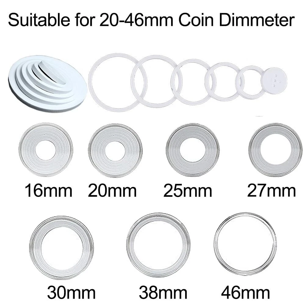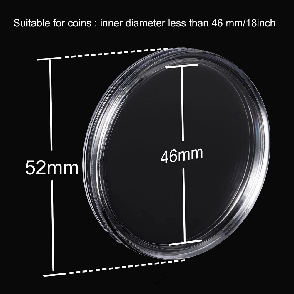 Universal Coins Collector Case: Coin storage organizer have 20 Pcs 46mm coin capsules and 7 Sizes(16/20/25/27/30/38/46 foam gaskets, Suitable for American Silver Eagle Liberty Coin , Half Dollar ,Bitcoin ,pennies, quarter dollar, golden dollars, tokens, medallions, badges, sliver eagles etc. (Case only not includes coins) Durable Coin Holders for Collectors: The coin capsules case is Made of high-transparent and thickened plastic material, dust-proof and oxidation-resisting, which is more Every compartment can hold coin capsules neatly and snugly. The fine and meticulous silver dollar coin holders box has the functions of splash-proof, dust-proof, and moisture-proof, providing the most comprehensive protection for your beloved silver coins. Coin Capsules Sizes for Protecting Tokens and Blinging Out Your Game . Usually Use Coin Collection : 46 * 3mm internal plastic coin holder with 6 sizes of foam gaskets allows you to store all collectible coins, and also Coin capsules are an attractive way to protect round cardboard tokens, especially those which are shuffled and used for random draws. Using coin capsules also adds heft and makes the tokens easier to shuffle within a draw bag, since the tokens no longer clump together. Unique Design Coin Protector: Crescent design for the coin capsule box is convenient to open and close. The strong and stable latch design combined with the small internal baffle makes it tightly closed and easy to use. The internal coins can be safely stored in one place, easy to find and not will lose. The standing design keeps your silver dollar coins sorted and organized. Easy Carrying Coin Case: The compact coin storage holder can be easily put into your backpack or suitcase for easy carrying to any place. The coin protectors plastic with portable design, which can be used easily and happily whether on a journey or party. Great gift for your families, friends and coin collector.