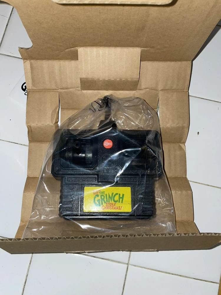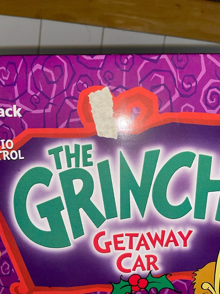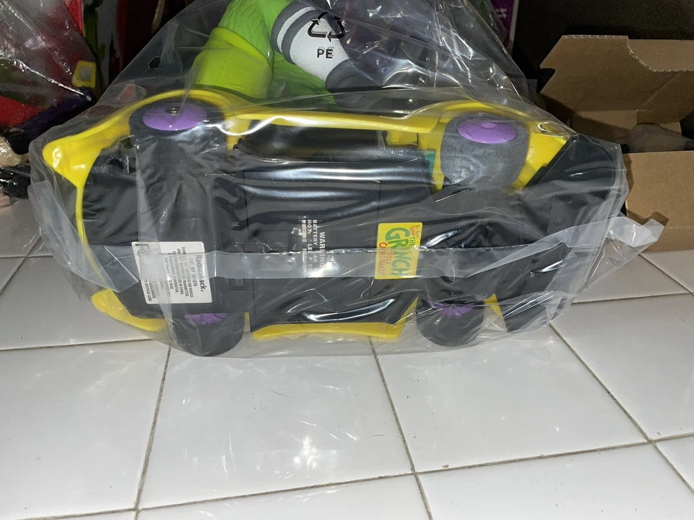New in box. The items are still in their bags. This does require 6 AA batteries for the car and one 9v for the remote. Batteries are not included. The box has a small blemish on the top. Please see pictures.