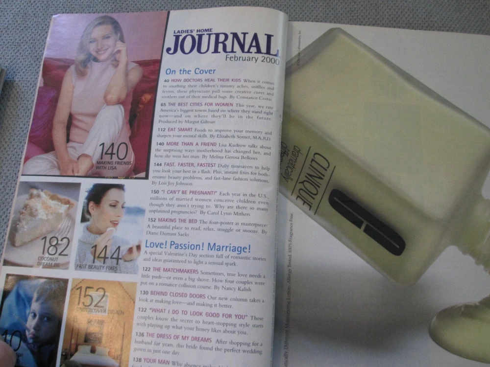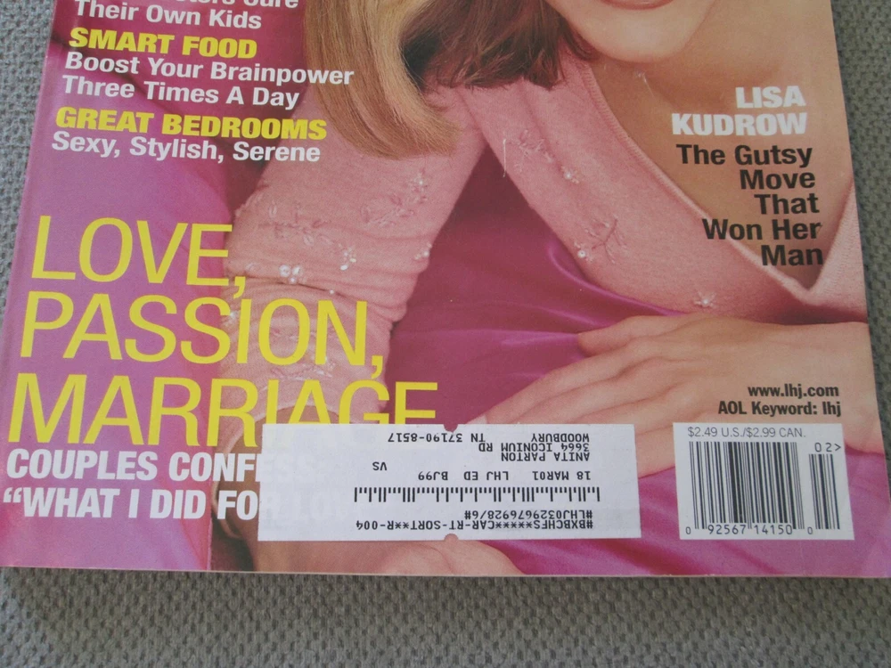 2000 Ladies Home Journal February Lisa Kudrow Smart Food vintage magazine NOTE: back cover has a tear Note: All magazines that I list may have some scuffing, fading, creasing, stress lines at the staples, spine roll, flecking, address label. Any major flaws will be noted in the description but please check the photos for more condition. You will receive the actual item in the photo of this listing. ***NOTE: may have the following conditions- writing and/or underling, name, creases on dj, pages or cover, dinged corners and other issues. Each book will be a very readable copy.
