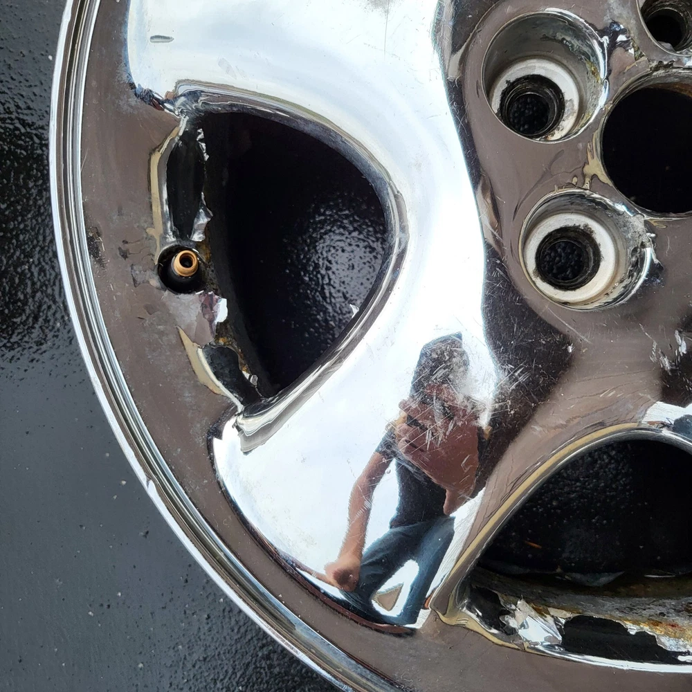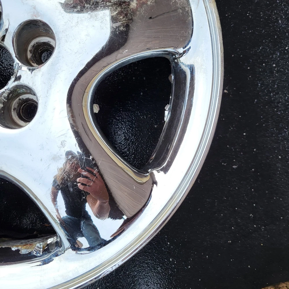 2001 - 2002 CHRYSLER PT CRUISER 16" CHROME ALUMINUM. 16X6, 5X100 BOLT PATTERN. THIS IS A USED OEM WHEEL IN COSMETICALLY FAIR BUT GOOD USEABLE CONDITION, WITH PEELING, SCUFFS/ CURB RASH & OXIDATION. PLEASE SEE PICTURES. THE ONE PICTURED IS THE ONE YOU WILL RECEIVE. 6 MONTH WARRANTY, 30 DAY RETURN POLICY. FREE SHIPPING WITH UPS GROUND. SAME DAY HANDLING.