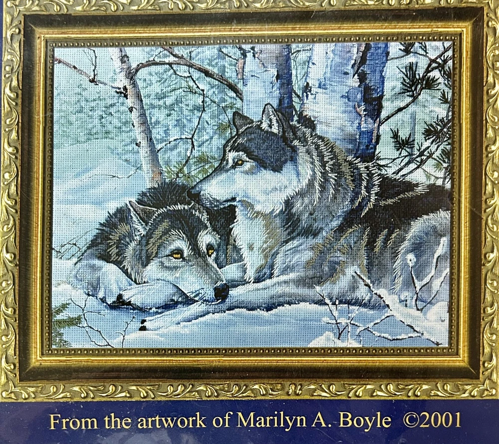 2001 Near North Treasures Collection Cross Stitch Kit ~ “Devoted Soulmates” ~ Kit Includes 14 Count Aida Cloth, Cotton Floss, Chart & Instructions ~ Kit Has Bern Opened, No Needle ~ See Photos