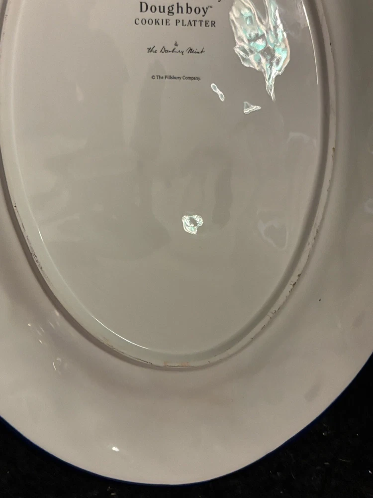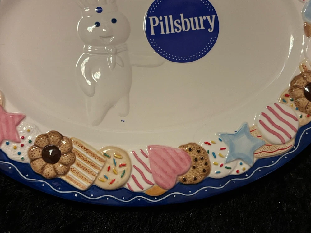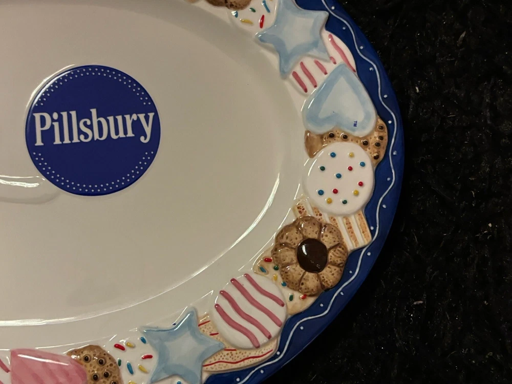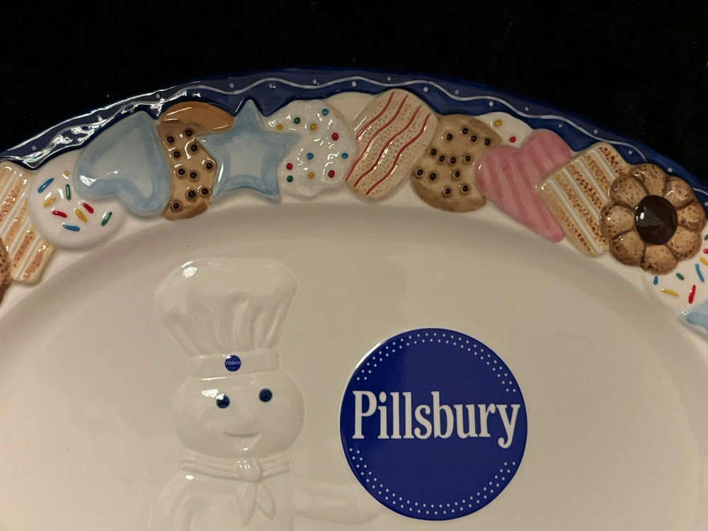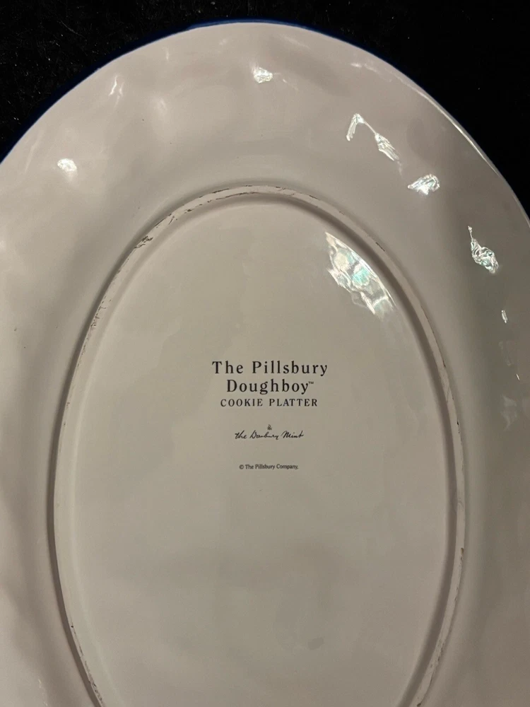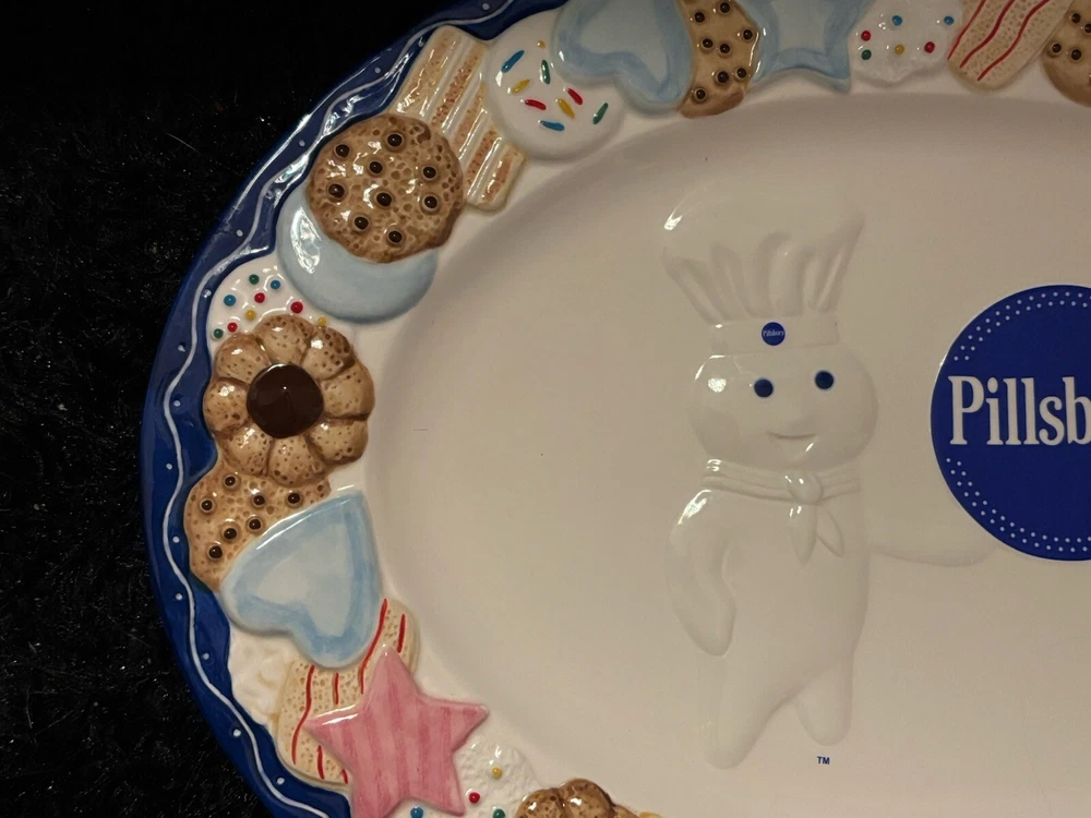 Approximately 16 inches in length this iconic Danbury Mint Pillsbury Doughboy cookie platter is a must for any collector. With no chips or cracks it can be used as a decorative serving tray or for simply decorative purposes.