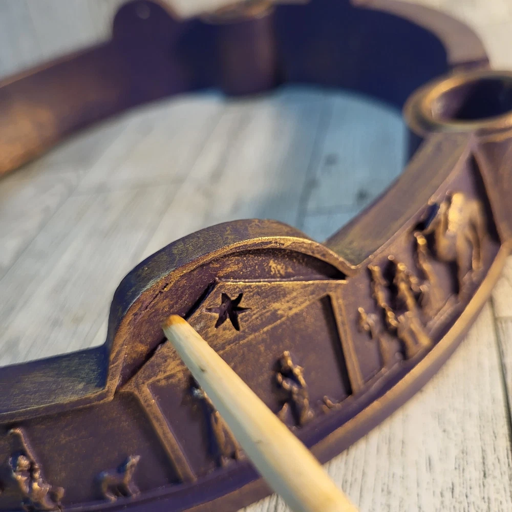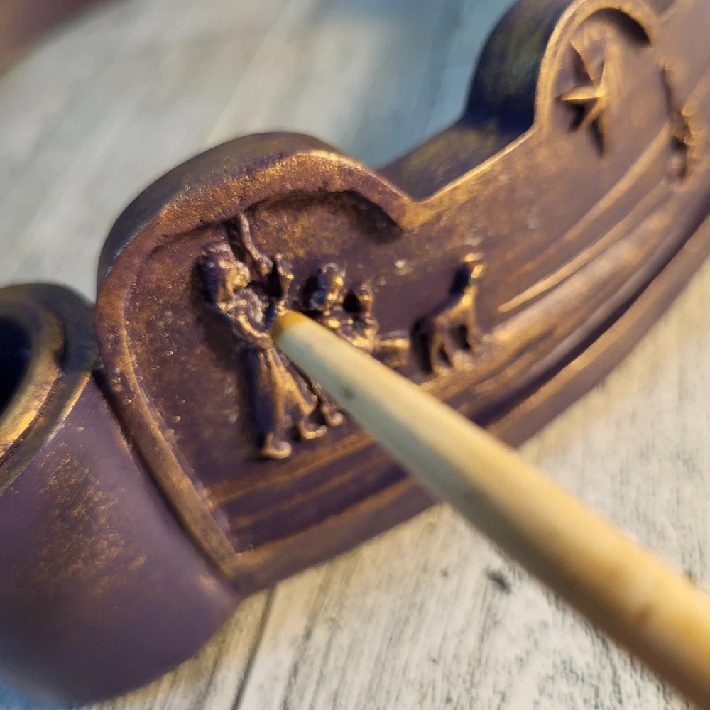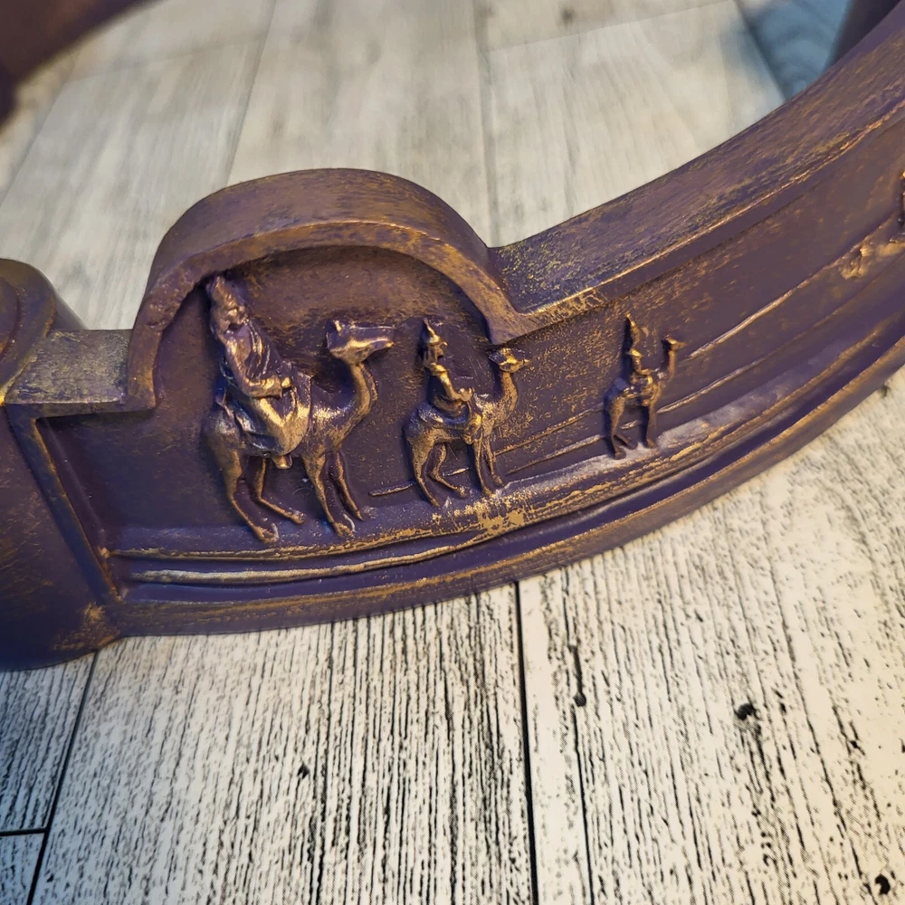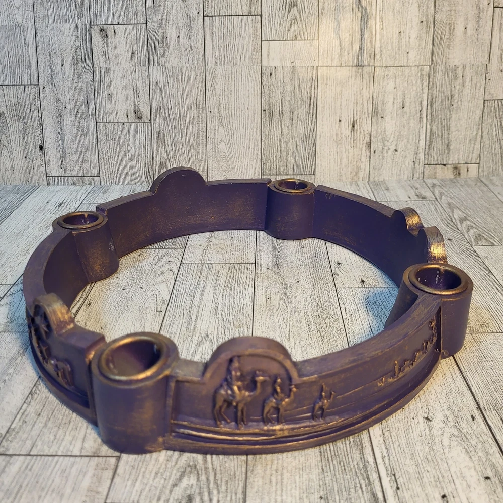MODIFIED ITEM: This item has been modified from its original state. There were a few chips around the top, they were filled in with a compound and repainted with similar colors as close as possible. Please see photos and ask any questions prior to purchase. It's still a beautiful holiday piece. This 2003 Abbey Press candle holder is a beautiful addition to your Christmas decor. Featuring a nativity scene with the wise men, this round advent candle holder is made of resin and is seller refurbished. The candle holder is medium-sized and colored in purple, making it perfect for adults who want to add a touch of elegance to their holiday festivities. This candle holder is sold as is and will bring joy to any home during the Christmas season.