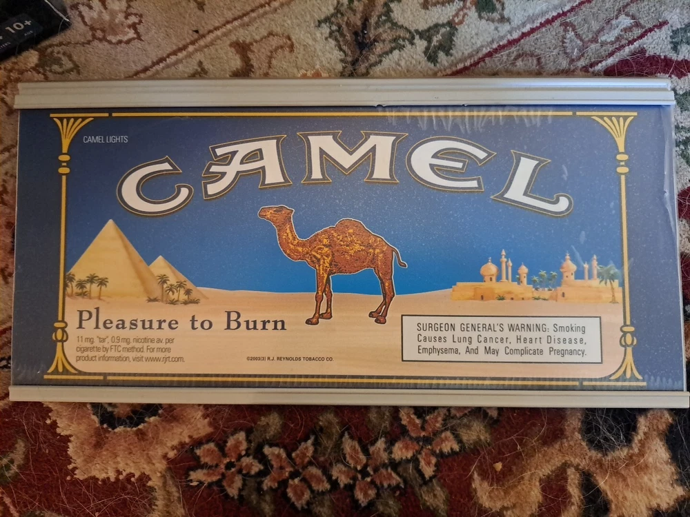 This 2003 Canel Cigarette Sign is a must-have for any collector of tobacciana. The sign is still sealed and has never been opened, making it a great addition to any collection. The design features the iconic Canel Cigarette logo and is sure to make a statement in any room. This sign is perfect for anyone who loves cigarettes or is a fan of the Canel Cigarette brand. It would make a great gift for a friend or family member who enjoys smoking. The sign is categorized as a collectible and is sure to be a conversation starter. Add this unique piece to your collection today!