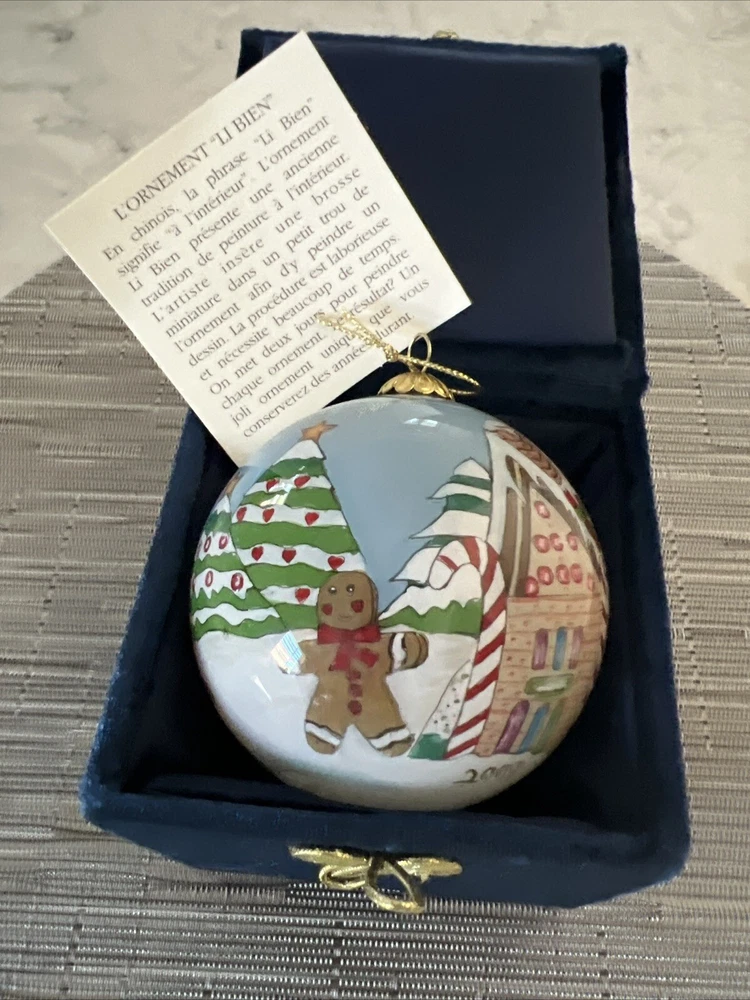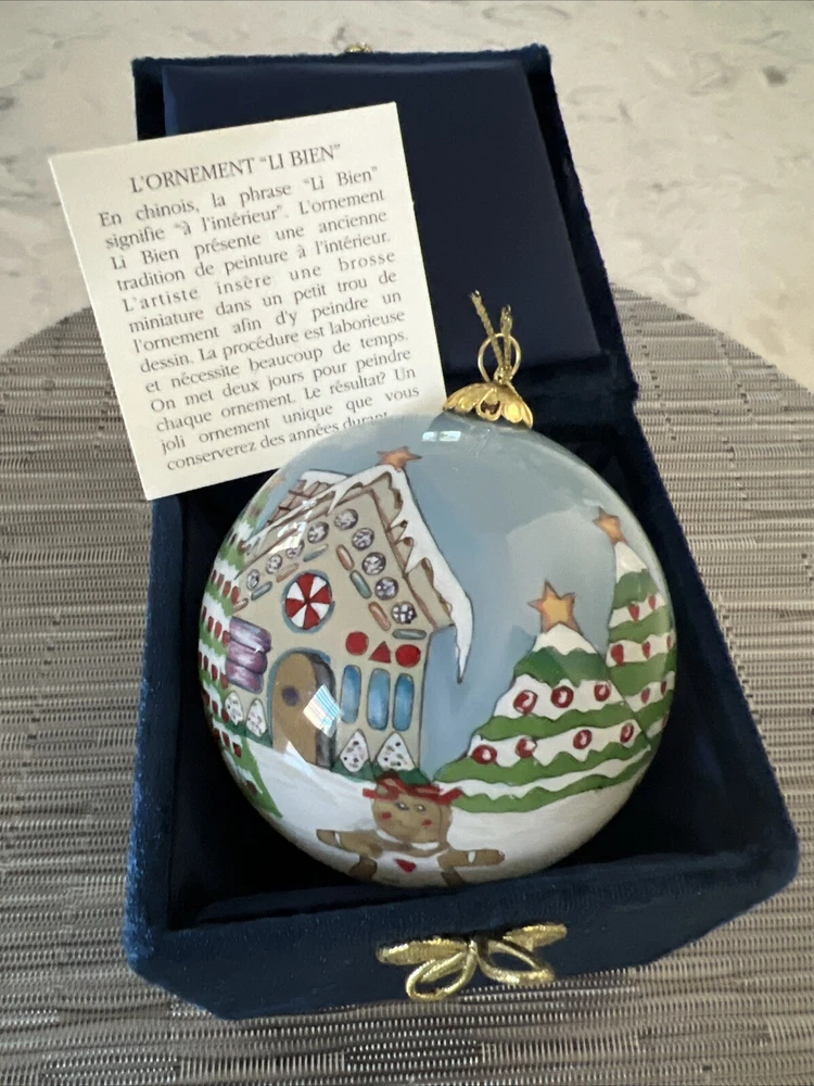 Home2003 Pier 1 Li Bien Gingerbread House Reverse Hand Painted Globe Ornament Nos