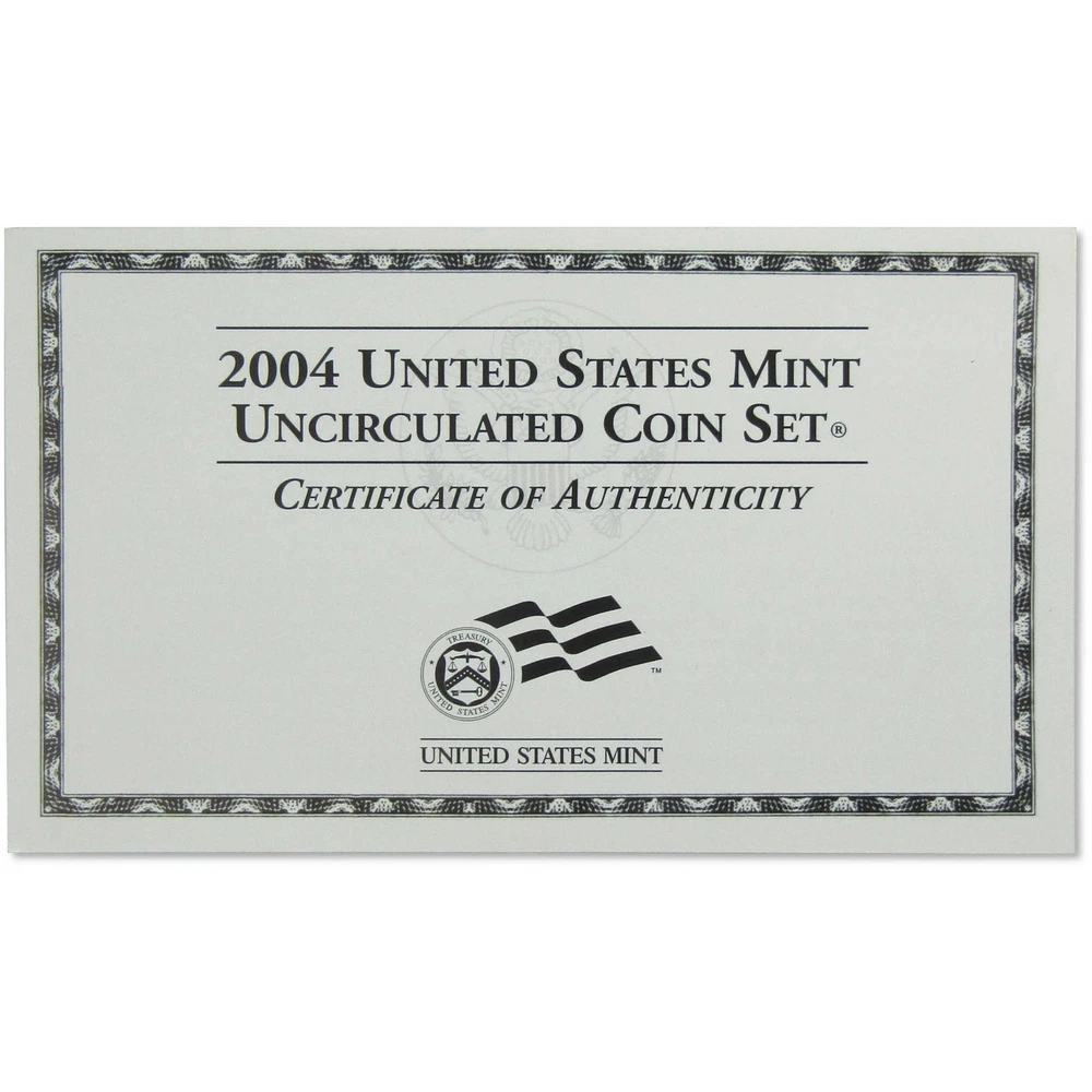 Home About Us Feedback View All Listings Contact Us Menu Home About Us Feedback View All Listings Contact Us 2004 Uncirculated Coin Set U.S Mint Government Packaging OGP COA This official 2004 U.S. Mint 22 coin Uncirculated Set contains Philadelphia and Denver Mint issues of the Sacagawea dollar, Kennedy half dollar, Roosevelt dime and Lincoln cent, both "Peace Medal" and "Keelboat" Westward Journey nickels, and all five Statehood quarters. Comes with the original U.S. Mint packaging, including a certificate of authenticity. These sets were made in 2004 and are not brand new. The packaging may show signs of wear such as minor folds and scrapes. The images used for this listing are stock photos from our inventory. Your purchase is guaranteed to match the quality of the product shown. Profile Coins & Collectibles - More Coins for the Money! Coin Type U.S. Mint Uncirculated Coin Set Denomination 1C, 5C, 10C, 25C, 50C, $1 Date 2004 Mint Mark P, D Grade Uncirculated Shop by category Coins: US Half Dollars Quarters Small Cents Dollars Dimes Nickels Three Cents Large Cents Two Cents Paper Money: US Store Newsletter Add our store to your Favorites to receive our email newsletters about new items & special promotions. Sign Up Home About Us Feedback View All Listings Contact Us Copyright © 2019 Profile Coins & Collectibles. All rights reserved. eBay template Design by OCDesignsOnline