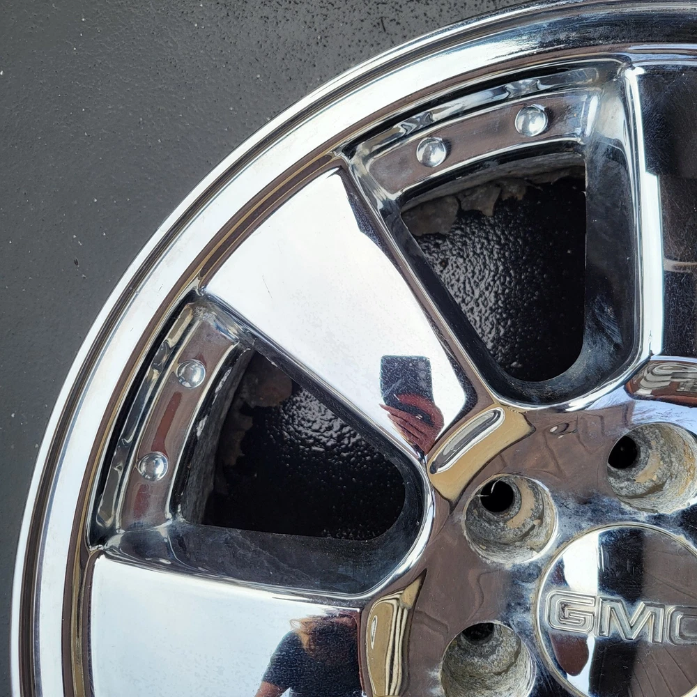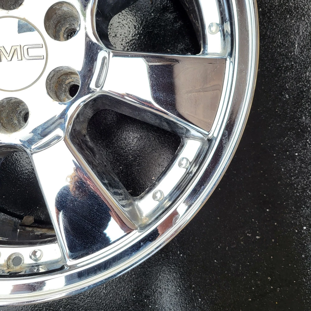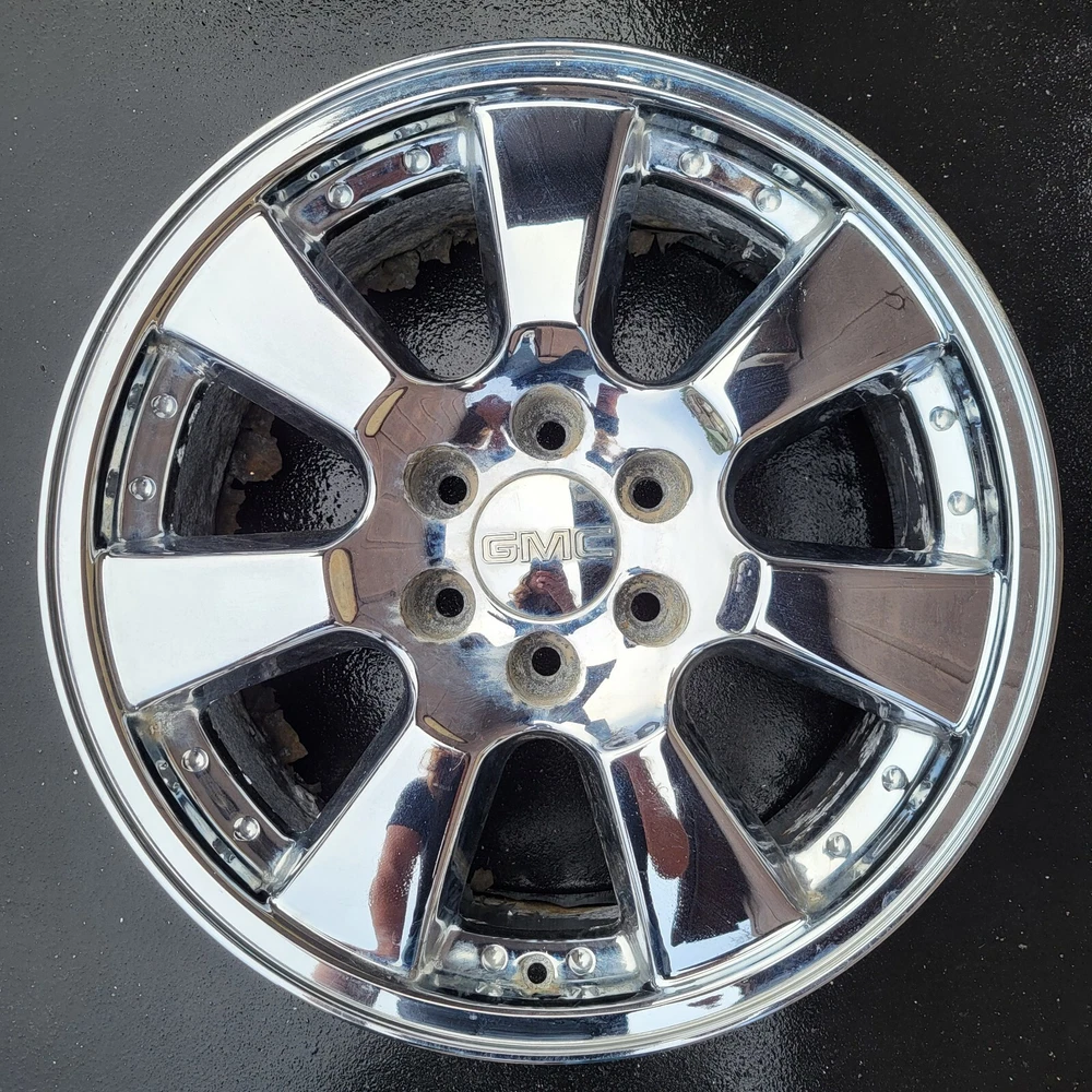 2005 - 2008 GMC SIERRA CADILLAC ESCALADE 20 INCH CHROME PLATED ALUMINUM ALLOY WHEEL. 20X 8.5, 6X139.7 BOLT PATTERN PART # 9595757 THIS IS A USED CHEVY WHEEL IN GOOD USEABLE CONDITION. WITH CHROME PEELING & OXIDATION. PLEASE SEE PICTURES. THE WHEEL PICTURED IS THE WHEEL YOU WILL RECEIVE. 6 MONTH WARRANTY, 30 DAY RETURN POLICY. FREE SHIPPING WITH UPS GROUND. SAME DAY HANDLING.