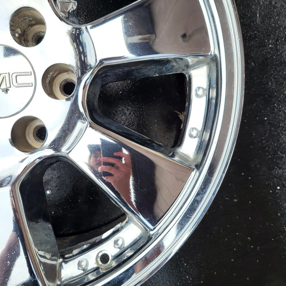 2005 - 2008 GMC SIERRA CADILLAC ESCALADE 20 INCH CHROME PLATED ALUMINUM ALLOY WHEEL. 20X 8.5, 6X139.7 BOLT PATTERN PART # 9595757 THIS IS A USED CHEVY WHEEL IN GOOD USEABLE CONDITION. WITH CHROME PEELING & OXIDATION. PLEASE SEE PICTURES. THE WHEEL PICTURED IS THE WHEEL YOU WILL RECEIVE. 6 MONTH WARRANTY, 30 DAY RETURN POLICY. FREE SHIPPING WITH UPS GROUND. SAME DAY HANDLING.