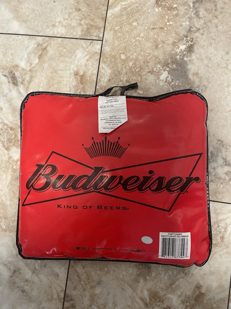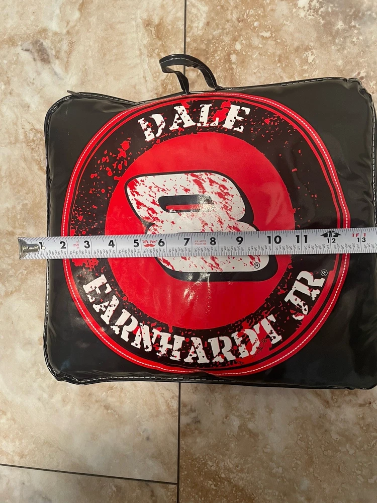 The 2007 Nascar Dale Earnhardt Jr. Stadium Seat Cushion is a collectible item featuring the race car driver's signature and is officially licensed by NASCAR. Made in China, this red seat cushion is designed for unisex adult fans of NASCAR and Dale Earnhardt Jr. It is a must-have for racing enthusiasts looking to show their support for the driver and the sport of NASCAR. Perfect for adding a touch of comfort and style to stadium seats or at-home fan cave. READ, has a few scratches, see photos.