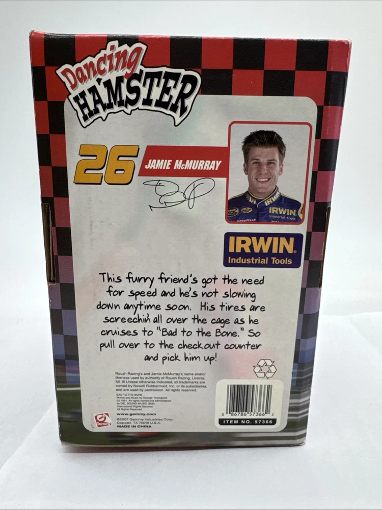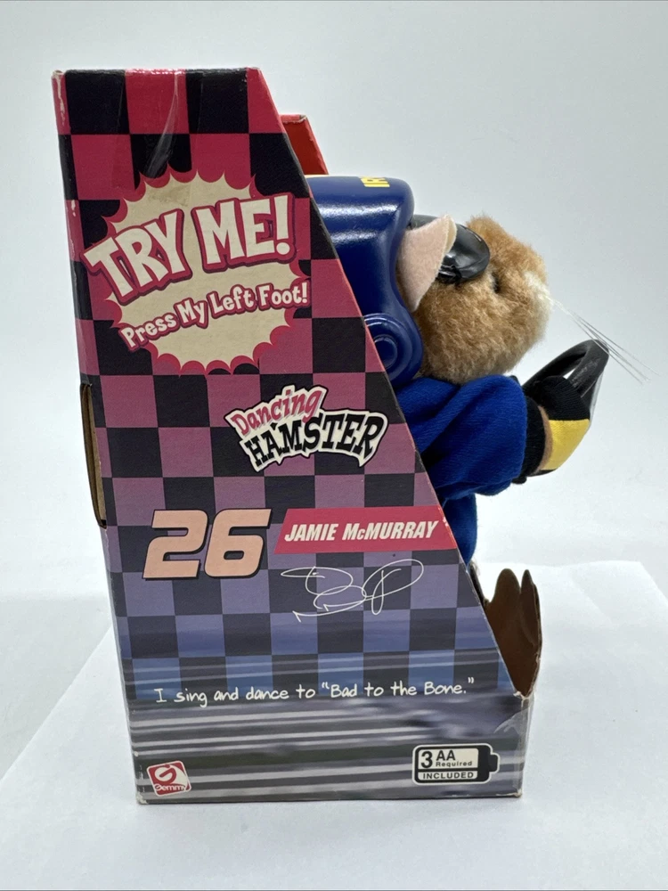 Please examine photo s thoroughly too, ensure this is the purchase for you. On / off switch does not work due to the age of the batteries that need replaced. This rare Gemmy Dancing Hamster #26 Jamie McMurray toy is a must-have for any Nascar fan. Produced in 2007, this new electronic toy is perfect for children aged 5 and above, and is sure to provide hours of entertainment. With its charming animal theme, this battery-operated toy is a great addition to any collection. The toy is in excellent working order and comes in its original packaging.