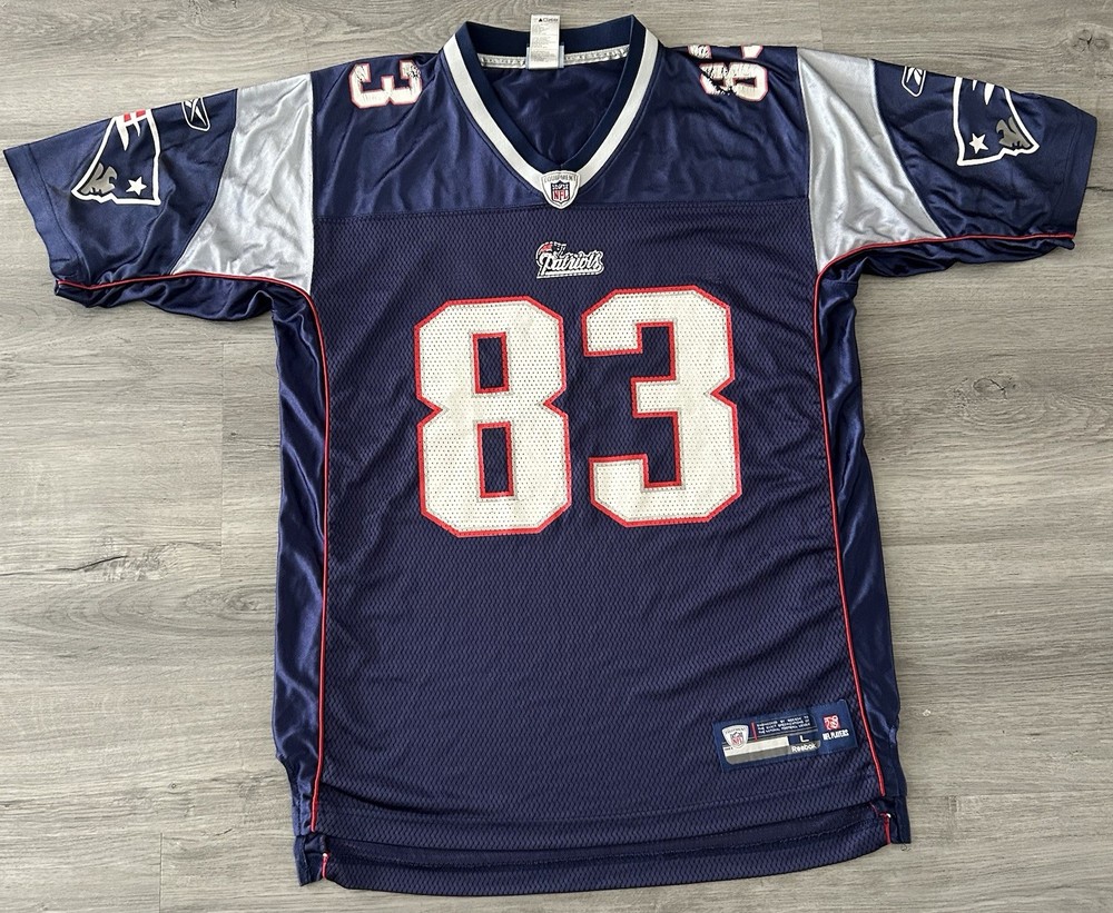 Product:JerseyTeam:New England PatriotsColor:BlueLeague:National Football League (NFL)Size:LPlayer:Wes WelkerOfficially Licensed:YesGender:MenPre & Post Season:Regular SeasonBrand:ReebokCountry/Region of Manufacture:HondurasSport:Football