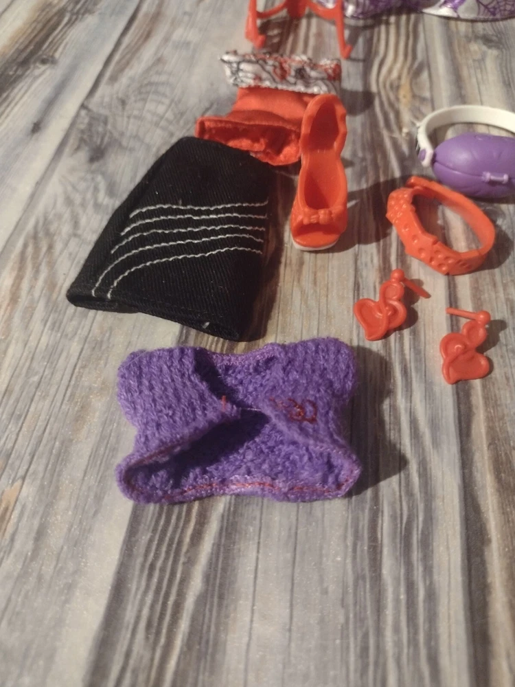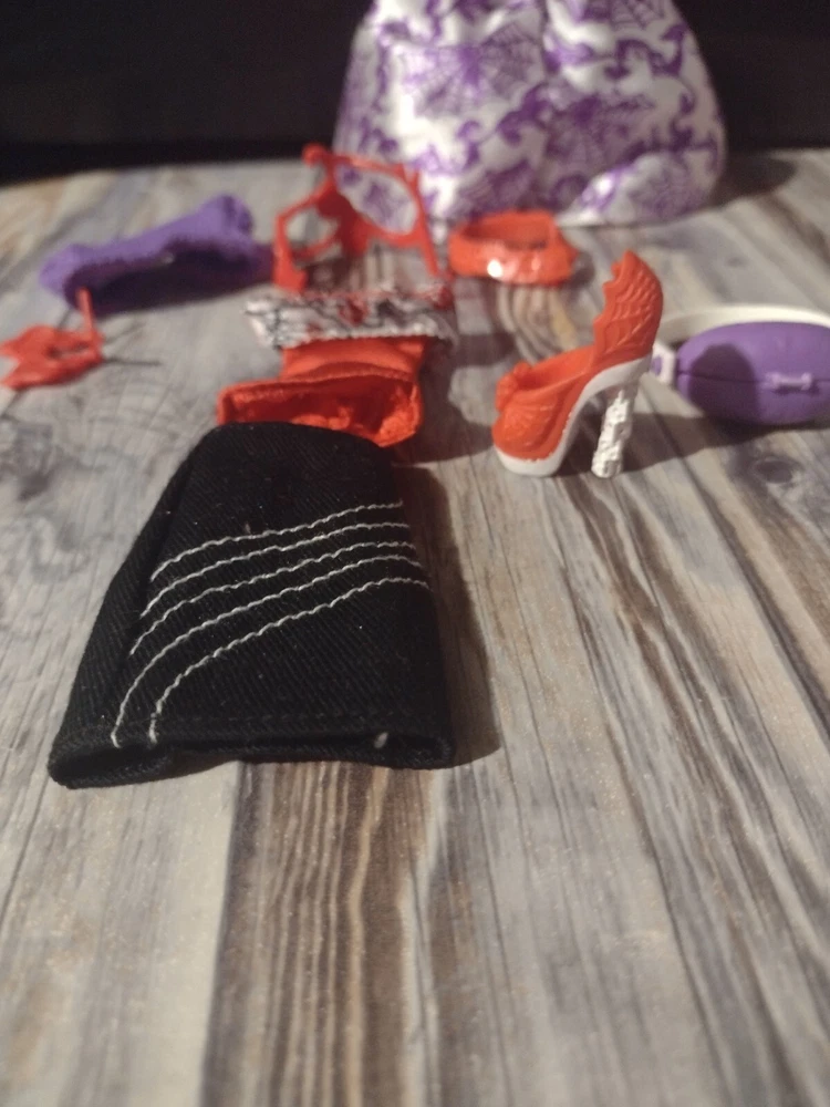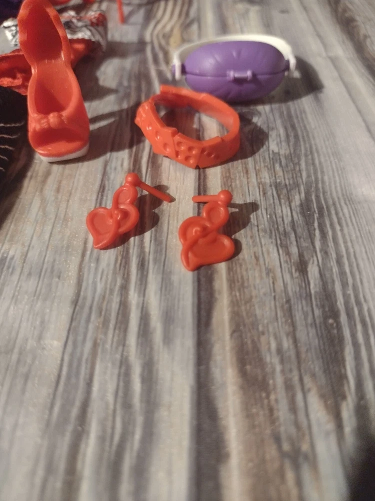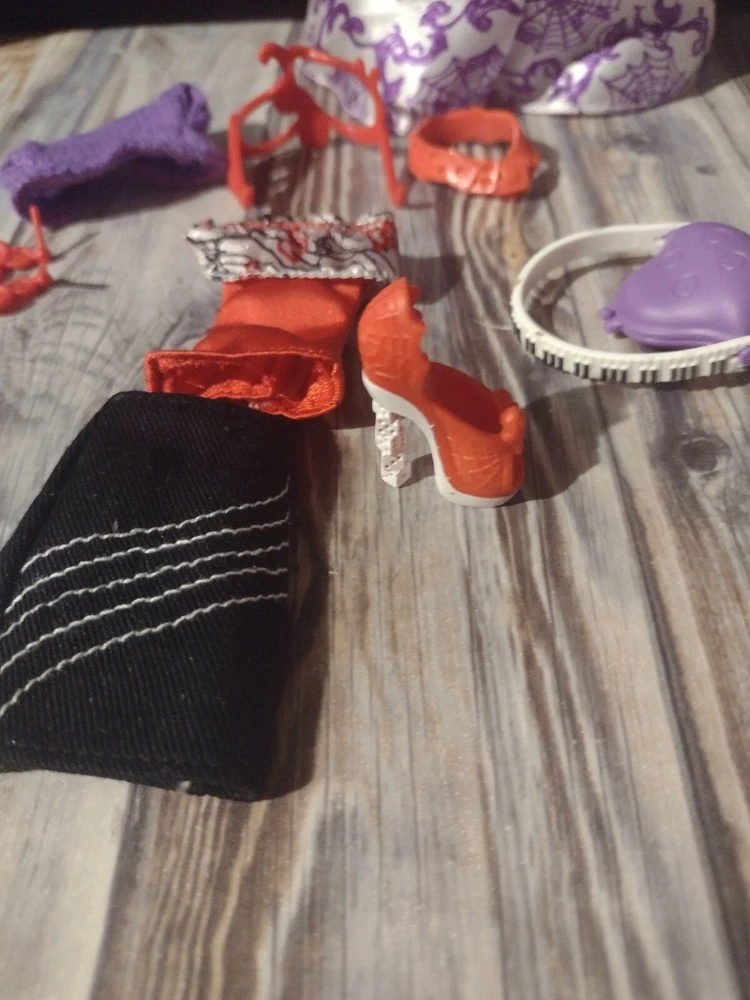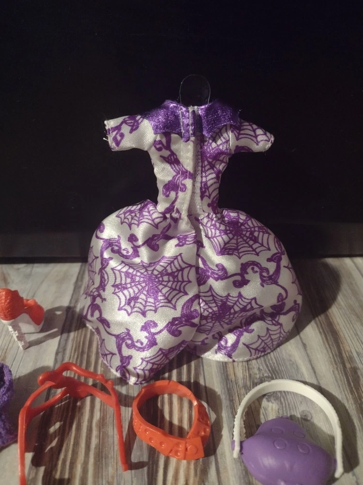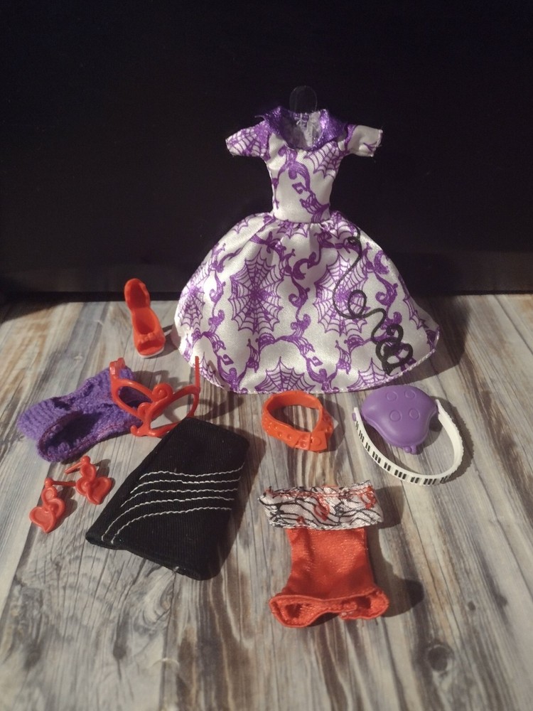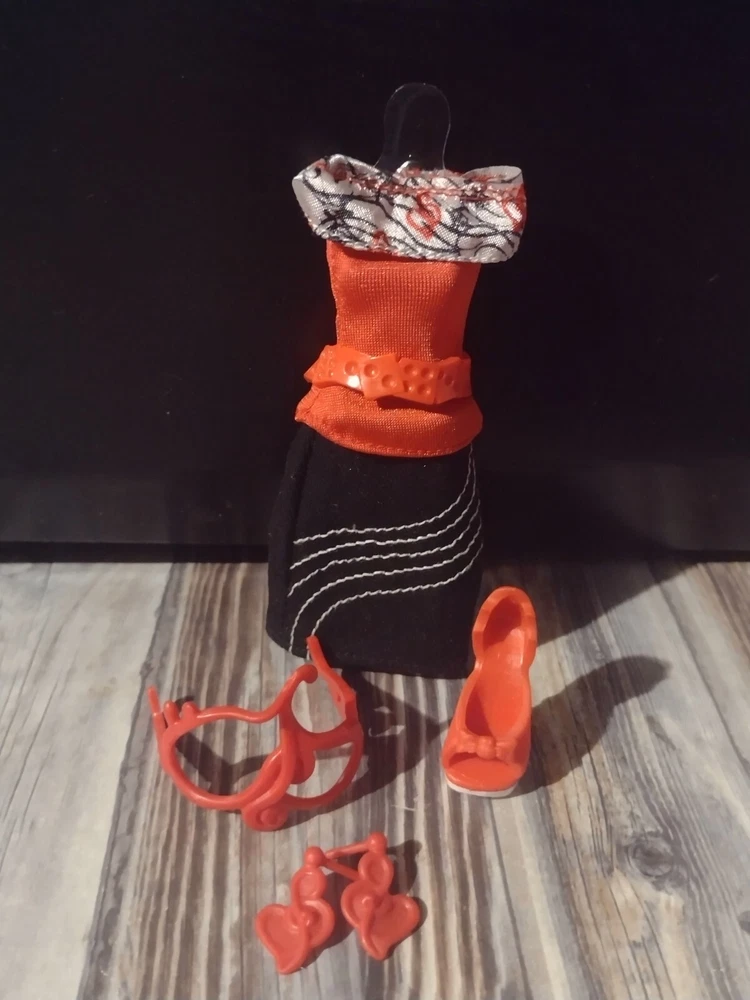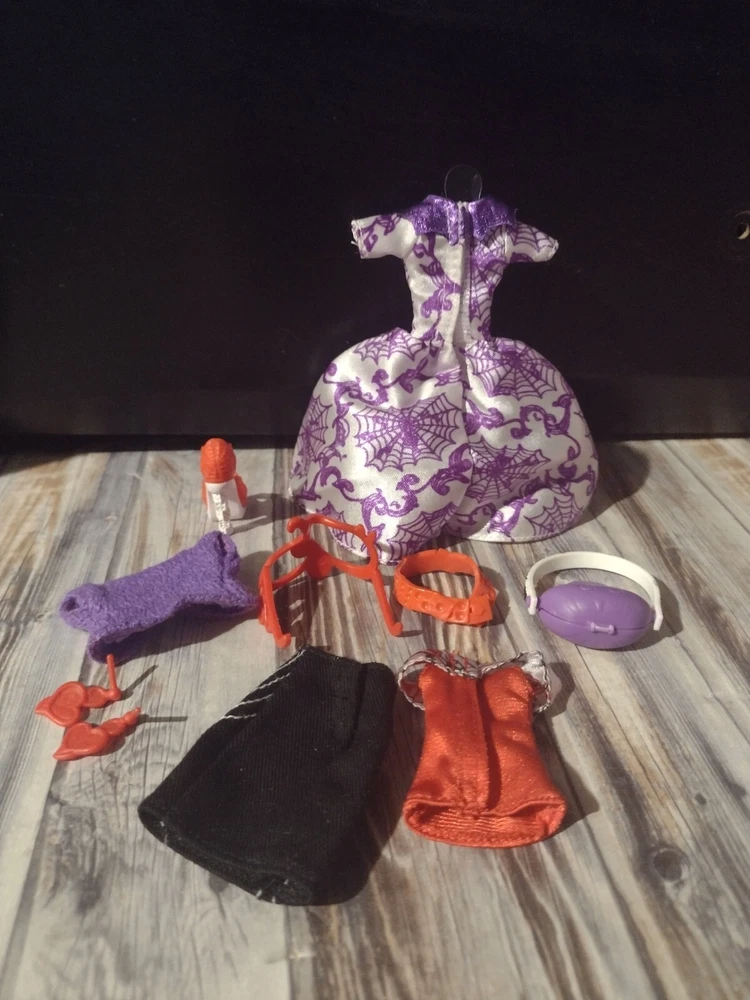 Although listed as used This outfit is new out of package I am selling my personal collection I would open my doll and accessories boxes and store them these pieces have never been on a doll or played with. Clear dress form not included shoe is a single I misplaced the other shoe. The closures have not snagged the clothing no stains or damage. Like new condition.Sold as shown no exchanges or returns. Please see photos for condition of items. Please message me if you have any questions.Thank you for visiting my store.