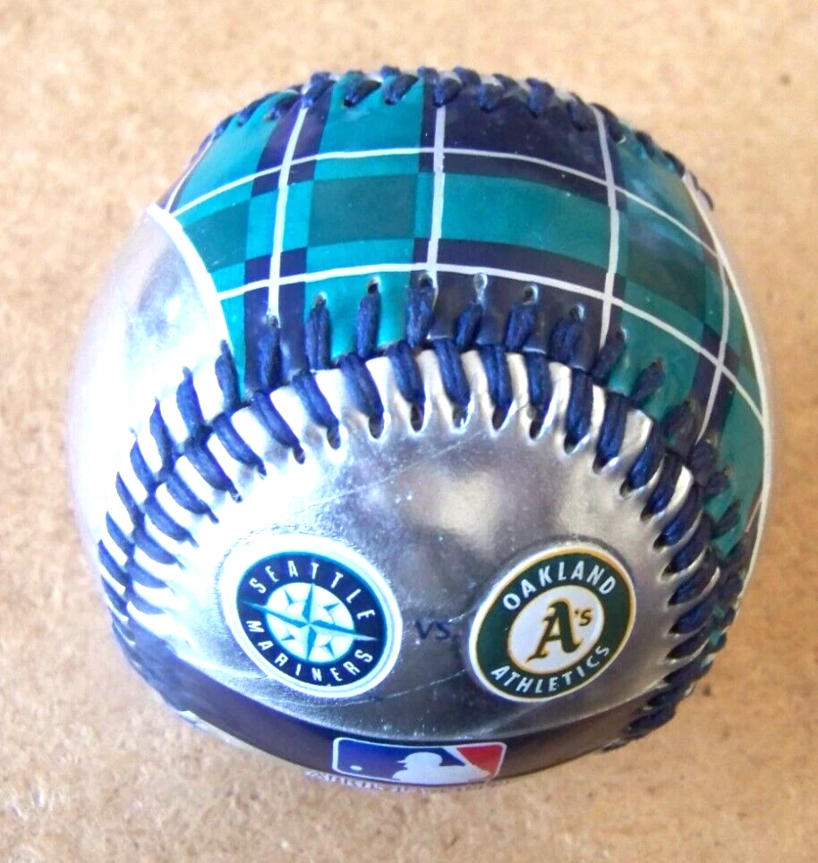 2012 Opening Day Seattle Mariners Oakland Athletics A's baseball ball Safeco Field This MLB licensed regulation sized baseball is silver / teal / purple with black stitching. Excellent condition. Minor nicks and marks. Don’t forget to click on my "Stores" link, next to my eBay name, to see other items I currently have listed for sale, or you can copy and paste this address into your browser: stores.ebay.com/highcountrycollectibles SHIPPING INFORMATION Shipping to U.S. addresses is FREE! HIGH COUNTRY COLLECTIBLES Since 1989 – A LEADER IN THE DENVER SPORTS MEMORABILIA MARKET. Check out my other auctions and listings, and keep an eye out for the different, unusual, and EXCLUSIVE items available nowhere else but from High Country Collectibles.