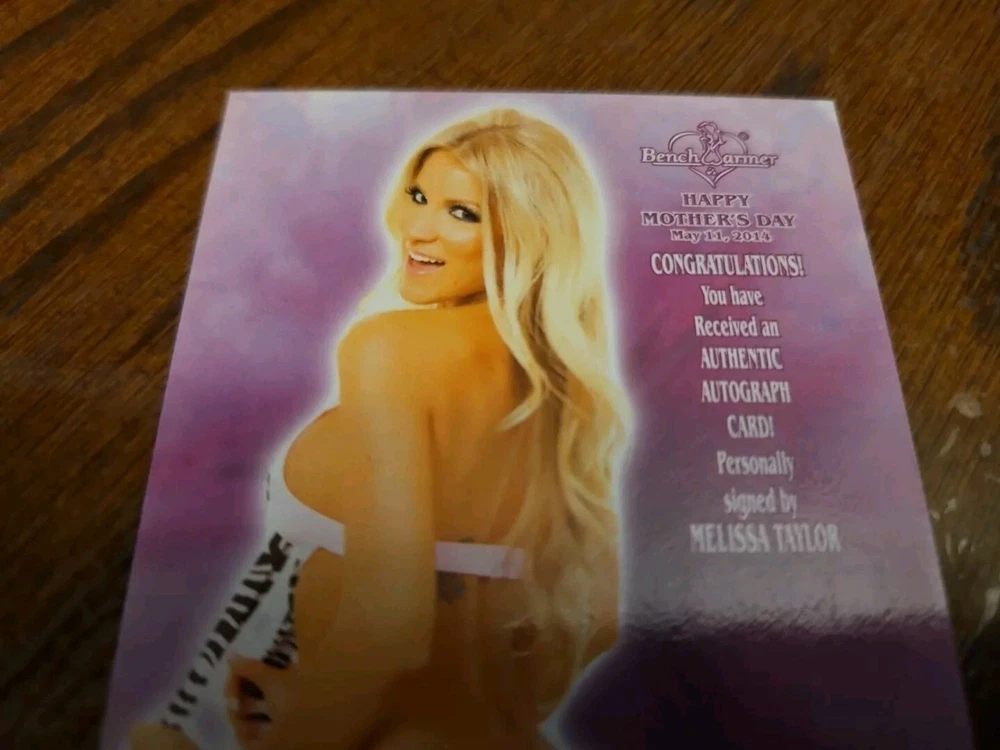 2014 Benchwarmer Happy Mother's Day Autograph Card Melissa Taylor Auto Playboy Melissa Dawn was born in Ashland, Oregon She graduated top of her class in school, and subsequently delved into the real estate industry for a few years. After winning several singing competitions and performing as the opening act for A-list artists/bands, Melissa moved to Los Angeles in order to further her music career. There, she recorded several songs with other recording artists, whom produced and performed with the likes of the Black Eyed Peas, and others. As a model-spokesperson, she spent significant time volunteering for It's All About The Kids, a non-profit organization in California. Melissa Dawn joined the Playboy family by being selected Playboy's Cyber Girl in November 2009. She moved into Hugh Hefner's Playmate house where she was featured in Season 6 of E!'s "Girls Next Door." In 2014, she was recruited to be the Brand Ambassador for Artistix Jeans, where she also contributed as designer for the women's line. Today, Melissa Dawn continues to be a model, spokesperson, designer and is a also event planner for ACE Corporate Incentives. She continues to sing, and is planning to return to her roots in country music, where it all begun. Please, look at all the pictures. Please check out my other eBay accounts... https://www.ebay.com/usr/kimmyrael https://www.ebay.com/usr/matlac99 https://www.ebay.com/usr/lacr6837 https://www.ebay.com/usr/malac9440 https://www.ebay.com/usr/lacr_3567 https://www.ebay.com/usr/lacroki8 https://www.ebay.com/usr/lacroki9 Shipping only to the continental US unless you contact me first. Will combine shipping!!!