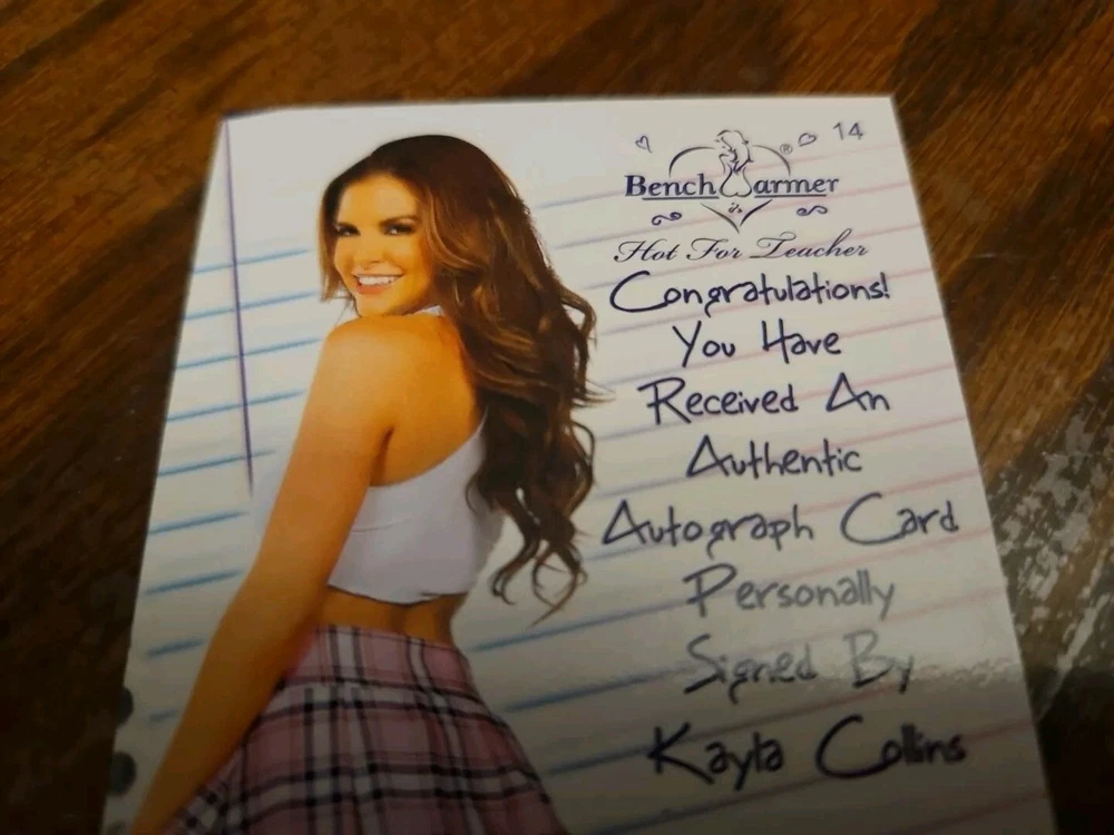 2014 Benchwarmer Hot For Teacher Autograph Gold Foil Card Kayla Collins #14 Auto Playboy Kayla Collins was born on April 1, 1987 in Reading, Pennsylvania. Kayla grew up in Mohnton, Pennsylvania. She worked at the tanning saloon the Baja Beach Tanning Club in Pennsylvania. Collins graduated from Twin Valley High School in Elverson, Pennsylvania in 2005 and attended Penn State University for three years. Kayla eventually moved to California to pursue a modeling career. She was discovered on MySpace by Holly Madison. Collins was the Playmate of the Month in the August, 2008 issue of "Playboy." Kayla has appeared as herself in several episodes of the reality TV series "The Girls Next Door." Collins owns a cat named Baby Boo. She lives in Los Angeles, California. Kayla Collins first captured the hearts of viewers around the world with her appearance on the hit show The Girls Next Door (2005) , Season 4, on E!. She flew to Los Angeles to test shoot for "Playboy" after being recruited by Hugh Hefner 's ex-girlfriend Holly Madison via the popular networking site MySpace. Kayla soon found out that she would be gracing the pages of Playboy in the August 2008 edition. After signing contracts with Playboy, Kayla packed her bags for California and never looked back. Starting a new life in California was ideal for the Pennsylvania native, as she'd dreamed of a glamorous life in the entertainment and fashion industry since she was a little girl. After her appearance on Season 4 of "The Girls Next Door", Kayla became a fan favorite and was later featured on Seasons 5 and 6, showcasing her centerfold shoot, 21st birthday, and more. Using the exposure of the show, Kayla developed a larger fan base than most Playboy Playmates. She majored in Business Marketing at Penn State University in Pennsylvania, and grew up a very hard worker, juggling five jobs at once during her teenage years. Her hard work and dedication to success was quickly noticed in California by fellow entrepreneurs. She was contracted in 2009 to design her own Swimsuit Line with Avante Swim called "Sweet". With a mini-launch of her line in 2010, Kayla was fortunate enough to wear her three swimsuits on the UK's hit TV series I'm a Celebrity, Get Me Out of Here! (2002) . which created not only a newfound fan base in the UK, but also extra exposure for her new line with 12-16 million viewers nightly. Over the past few years Kayla has been featured on numerous magazine covers and spreads, commercials and shoots for such well-known brands as Mini Cooper, Comedy Central and Spike TV. After appearing on "I'm a Celebrity Get Me Out of Here!" Kayla had a very significant amount of press surrounding her career, and her love life. Building up a strong momentum in just three years, Kayla is continuing to work hard and plant the seeds to new business ventures, and upcoming appearances on television and more. Please, look at all the pictures. Please check out my other eBay accounts... https://www.ebay.com/usr/kimmyrael https://www.ebay.com/usr/matlac99 https://www.ebay.com/usr/lacr6837 https://www.ebay.com/usr/malac9440 https://www.ebay.com/usr/lacr_3567 https://www.ebay.com/usr/lacroki8 https://www.ebay.com/usr/lacroki9 Shipping only to the continental US unless you contact me first. Will combine shipping!!!