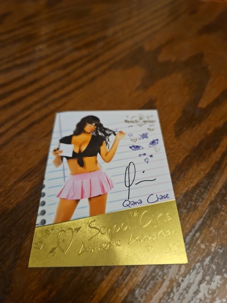 2014 Benchwarmer Hot For Teacher Autograph Gold Foil Card Qiana Chase #11 Auto Playboy Tall (5'9"), busty and luscious stunner Qiana Chanel Chase was born on February 12, 1981, in Los Angeles, California. The exceptionally leggy and statuesque beauty first began modeling in her early 20s. Qiana was featured in two "Playboy" newsstand special editions prior to becoming the Playmate of the Month in the July 2005 issue of the famous men's magazine. Chase went on to appear in a couple of "Playboy" videos. She appears in the music video "P.I.M.P." by rap artist 50 Cent and was featured in the 2005 Lingerie Bowl. Moreover, Qiana has small acting roles in Epic Movie (2007) and Funny People (2009) and popped up as herself on the reality TV series The Girls Next Door (2005) . Outside of modeling, Chase is also a professional make-up artist who enjoys dancing in her spare time. Please, look at all the pictures. Please check out my other eBay accounts... https://www.ebay.com/usr/kimmyrael https://www.ebay.com/usr/matlac99 https://www.ebay.com/usr/lacr6837 https://www.ebay.com/usr/malac9440 https://www.ebay.com/usr/lacr_3567 https://www.ebay.com/usr/lacroki8 https://www.ebay.com/usr/lacroki9 Shipping only to the continental US unless you contact me first. Will combine shipping!!!