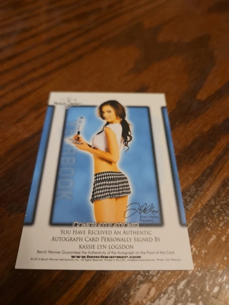 2014 Benchwarmer Hot For Teacher Yearbook Autograph Card Kassie Lyn Logsdon Auto Playboy Kassie grew up in a small town in the mountains of Southern California. She has always enjoyed having the National Forest as her backyard, taking advantage of sunny days on the lake and snowy days by the fireplace. She started modeling in late 2009 when fellow Rim of the World High School alumni and upcoming Playmate, Heather Rae Young (Miss Feb 2010) asked if she was interested in posing for Playboy. After a few photo shoots, she was named Miss May 2010! She has continued to work with Playboy hosting parties and attending events, even donning the infamous purple bunny suit. She has since been featured in two other popular Playboy pictorials; Camp Playboy and Splendor in the Grass. All three pictorials she was featured in have been published internationally. She has appeared in various other magazines including Guitar World and UMM, posing for photographers such as Tony Kelly, Josh Ryan, Joel Flora and Arney Freytag. Although modeling is still a passion, Kassie's true love is art. She is quite talented with clay or a sewing machine but painting is her favorite. She mainly paints characters and landscapes but occasionally goes abstract. Her paintings have been sold all over the country and can be purchased online here. Please, look at all the pictures. Please check out my other eBay accounts... https://www.ebay.com/usr/kimmyrael https://www.ebay.com/usr/matlac99 https://www.ebay.com/usr/lacr6837 https://www.ebay.com/usr/malac9440 https://www.ebay.com/usr/lacr_3567 https://www.ebay.com/usr/lacroki8 https://www.ebay.com/usr/lacroki9 Shipping only to the continental US unless you contact me first. Will combine shipping!!!