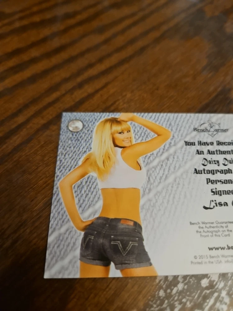 2015 Benchwarmer Daizy Dukez Autograph Gold Foil Card Lisa Gleave Auto Playboy Lisa Gleave was born on November 11, 1976 in Gold Coast, Australia. She is an actress, known for Accepted (2006) , Night of the Templar (2012) and CSI: NY (2004) . During 2005–2009, she was a model on the game show Deal or No Deal , where she always held the number 3 briefcase. She has also had roles in Accepted and CSI: NY . She is an E3 booth babe for Tecmo . Gleave is the cover model for the 2006 Maxim calendar and has been featured in Maxim and FHM . Please, look at all the pictures. Please check out my other eBay accounts... https://www.ebay.com/usr/kimmyrael https://www.ebay.com/usr/matlac99 https://www.ebay.com/usr/lacr6837 https://www.ebay.com/usr/malac9440 https://www.ebay.com/usr/lacr_3567 https://www.ebay.com/usr/lacroki8 https://www.ebay.com/usr/lacroki9 Shipping only to the continental US unless you contact me first. Will combine shipping!!!