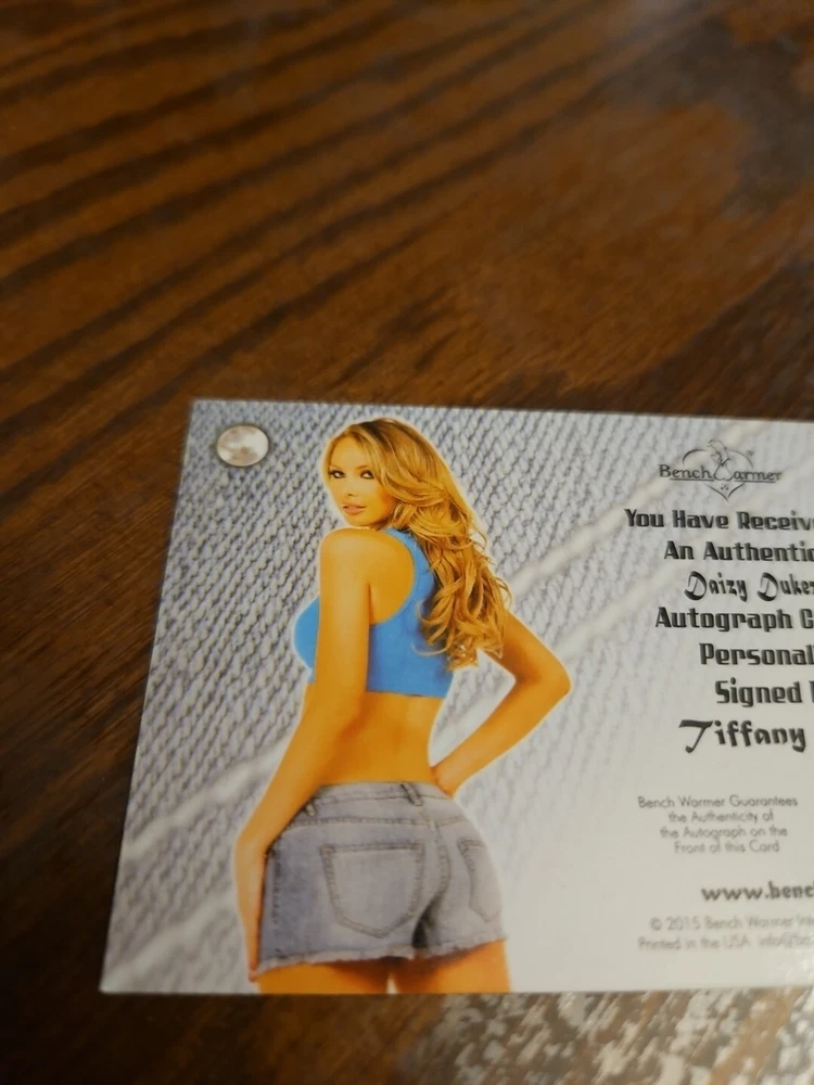 2015 Benchwarmer Daizy Dukez Autograph Gold Foil Card Tiffany Toth Auto Playboy Tiffany, a mix of Hungarian, French, and Irish was born and raised in beautiful Southern California. Born March 28th, Tiffany is your ideal Aries, always wanting to try new and exciting things that are beyond her comfort zone. One of those exciting adventures were walking through the doors of Playboy. Following her shoots with them, she signed with an agent and began booking jobs shooting for lingerie companies such as Shirley of Hollywood, Seven Til Midnight, Elegant Moments and Jvalentine. After several years working events for Playboy, Hef decided to make Tiffany the September 2011 Playmate. Being a Playmate was a life changing experience that allowed her to travel to places such as New Zealand, Korea and South America. During this time she became the face of the Palms Hotel Ads and Billboards and even found herself on the covers of magazines such a Guitar World, Iron Man Magazine and Muscle & Fitness. Among her favorite pleasures are spending time with family and her four dogs, traveling, cooking and painting. Tiffany resides in California where she maintains her busy schedule of modeling. Please, look at all the pictures. Please check out my other eBay accounts... https://www.ebay.com/usr/kimmyrael https://www.ebay.com/usr/matlac99 https://www.ebay.com/usr/lacr6837 https://www.ebay.com/usr/malac9440 https://www.ebay.com/usr/lacr_3567 https://www.ebay.com/usr/lacroki8 https://www.ebay.com/usr/lacroki9 Shipping only to the continental US unless you contact me first. Will combine shipping!!!