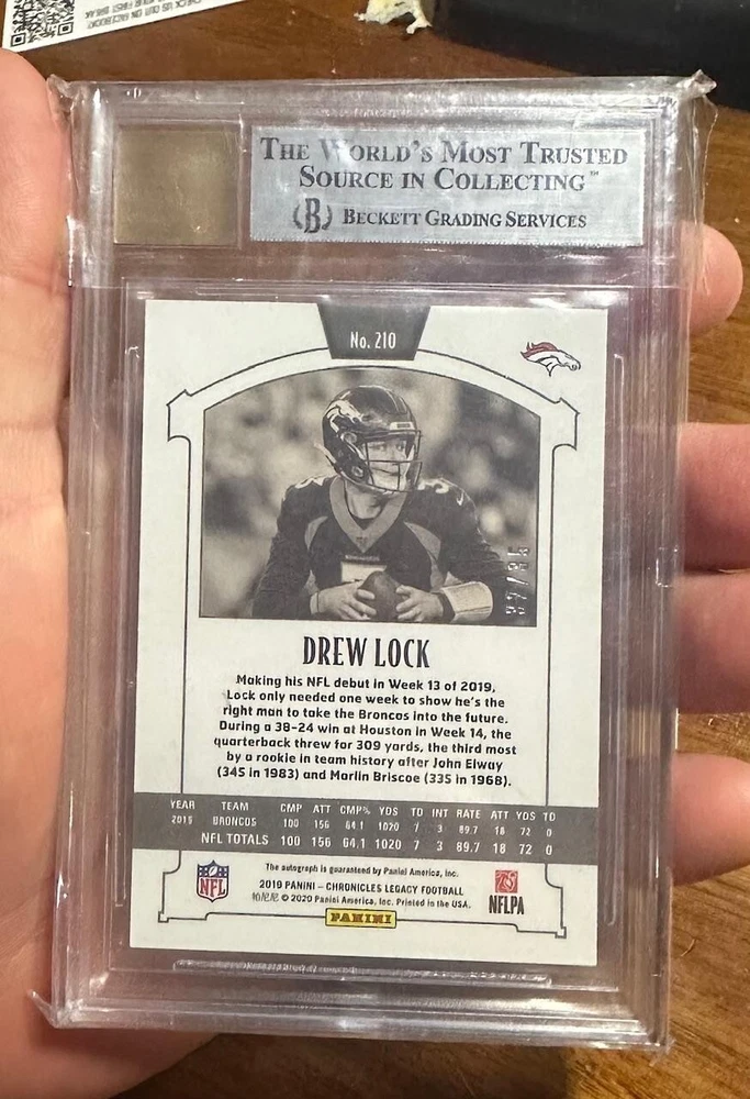 First bid wins this 2019 Panini Legacy Autographs Red #210 Drew Lock Broncos RC Auto 32/35 BGS 9 Cert # 0012254650 . You are buying what's in pictures. Any questions please ask. Please check out items listed daily. Thanks