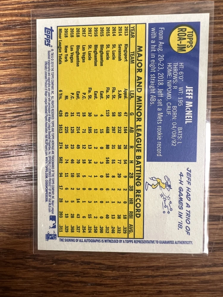 Real One High Number Autographs Jeff McNeil #ROA-JM 2019 Topps Heritage Shipping will be $4.00 for the first card within the United States, and free for every card after that. I do ship worldwide at a cost of $15.00, every additional card is free. Thanks for checking out my listing, and be sure to look at my other cards currently up for sale!